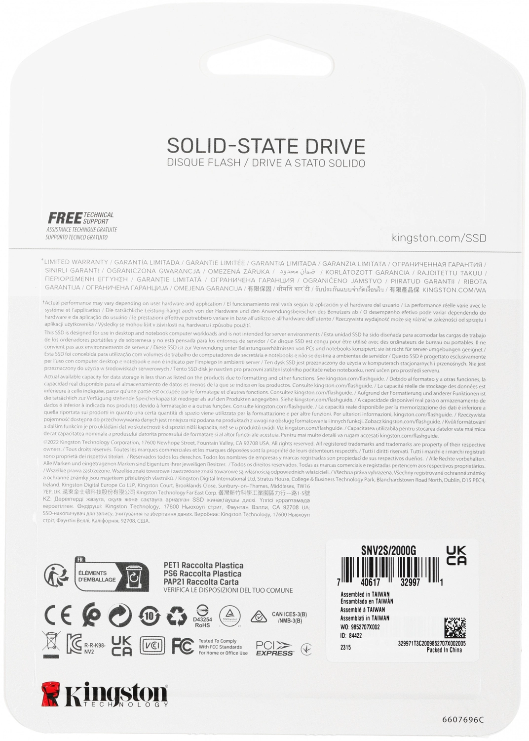 Твердотельный накопитель SSD Kingston NV2 NVMe™ M.2 2280 SNV2S/2000G 2000GB Client SSD PCIe Gen 4.0 x 4, 3500/2800, IOPS K, MTBF M, MB, 640TBW, 1.5DWPD, RTL (200) (329971) | НИКС Екатеринбург