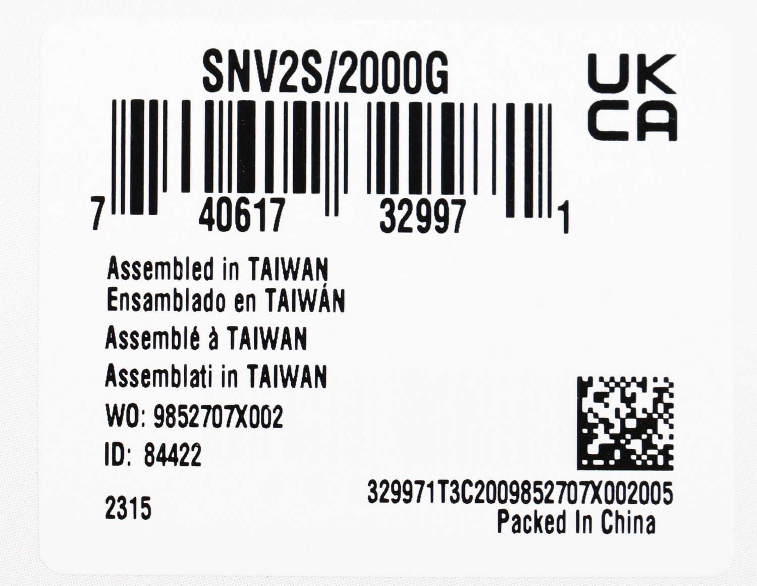 Твердотельный накопитель SSD Kingston NV2 NVMe™ M.2 2280 SNV2S/2000G 2000GB Client SSD PCIe Gen 4.0 x 4, 3500/2800, IOPS K, MTBF M, MB, 640TBW, 1.5DWPD, RTL (200) (329971)