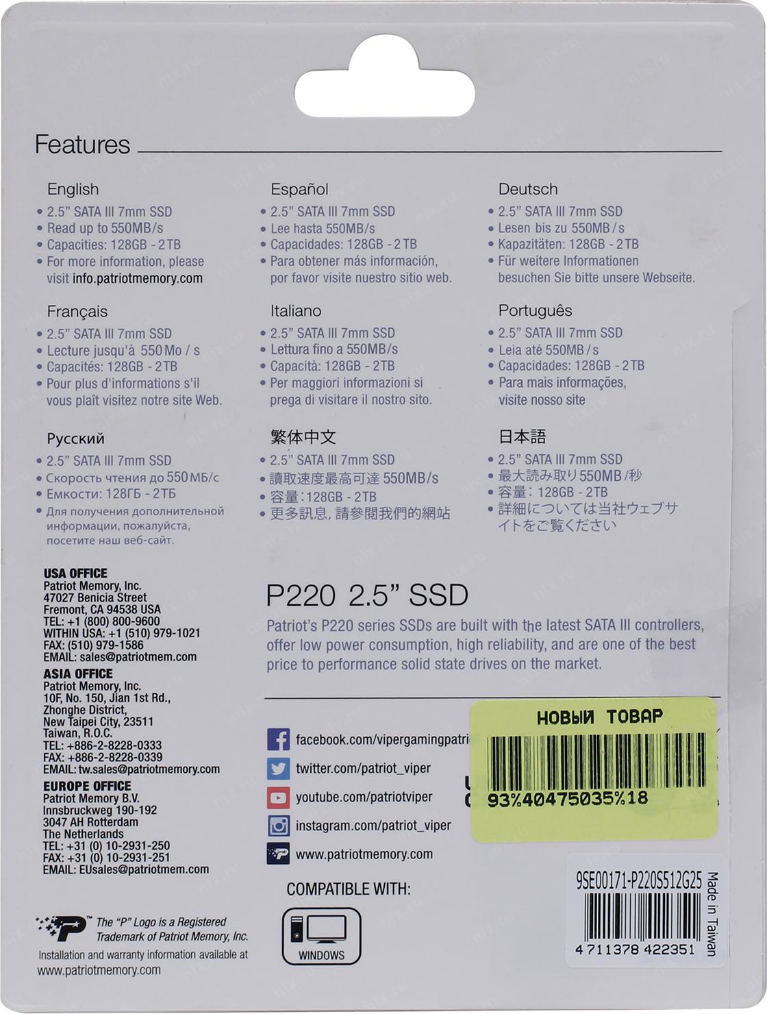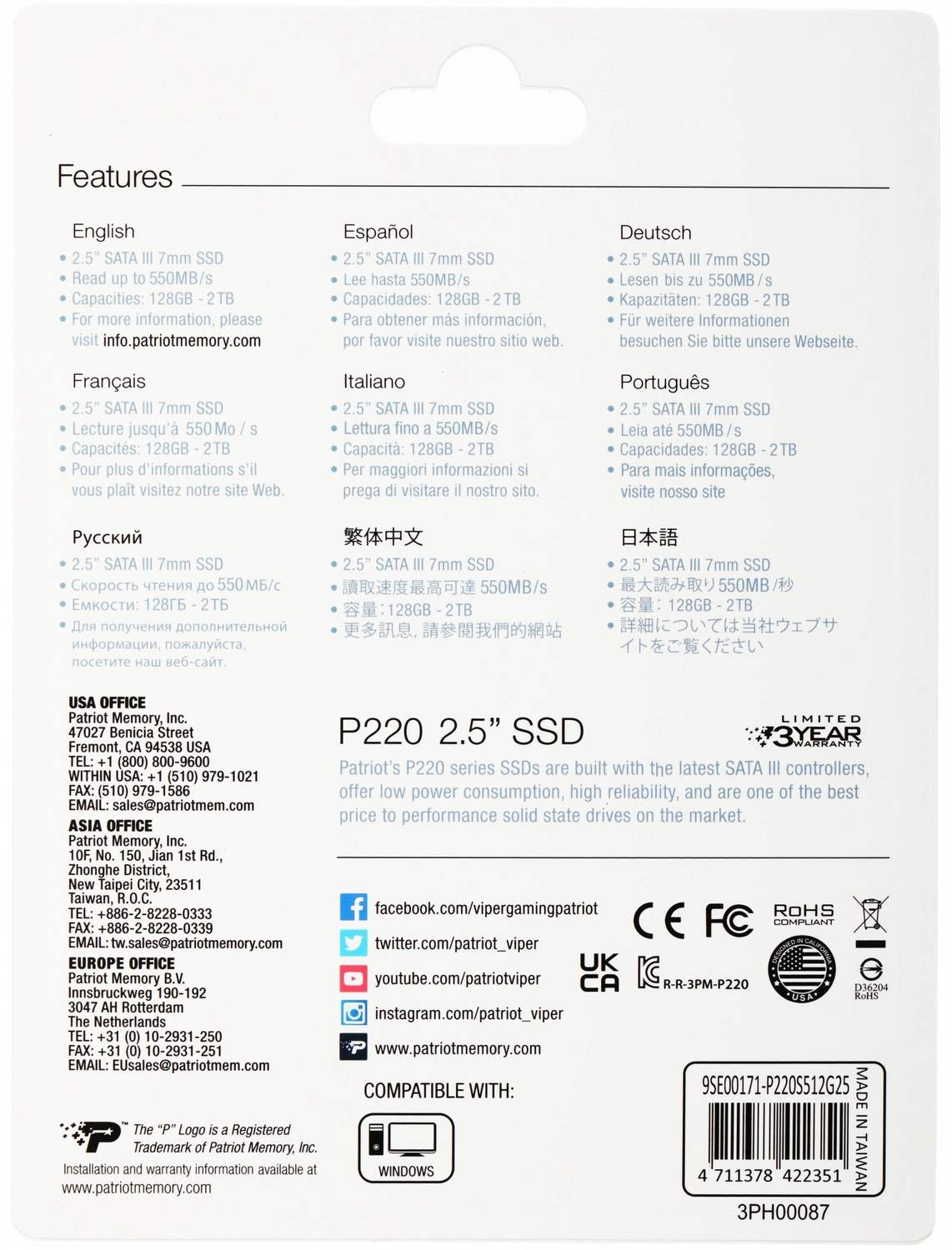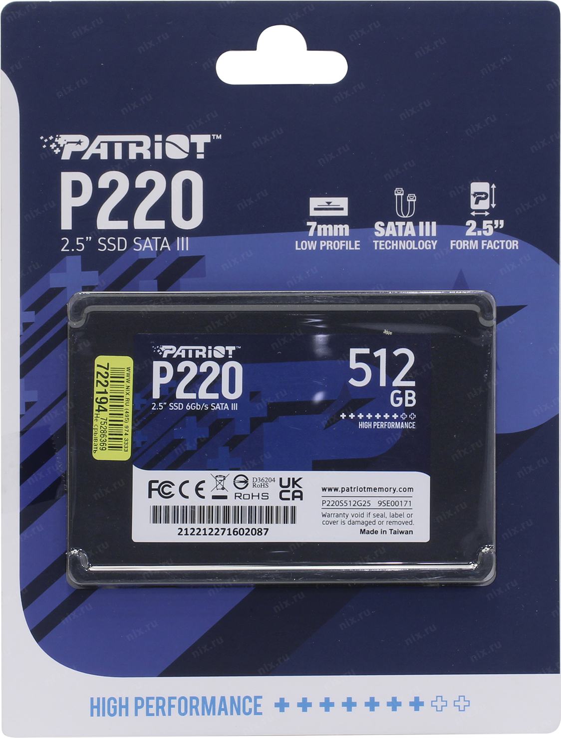 Накопитель SSD Patriot SATA-III 512GB P220S512G25 P220 2.5"