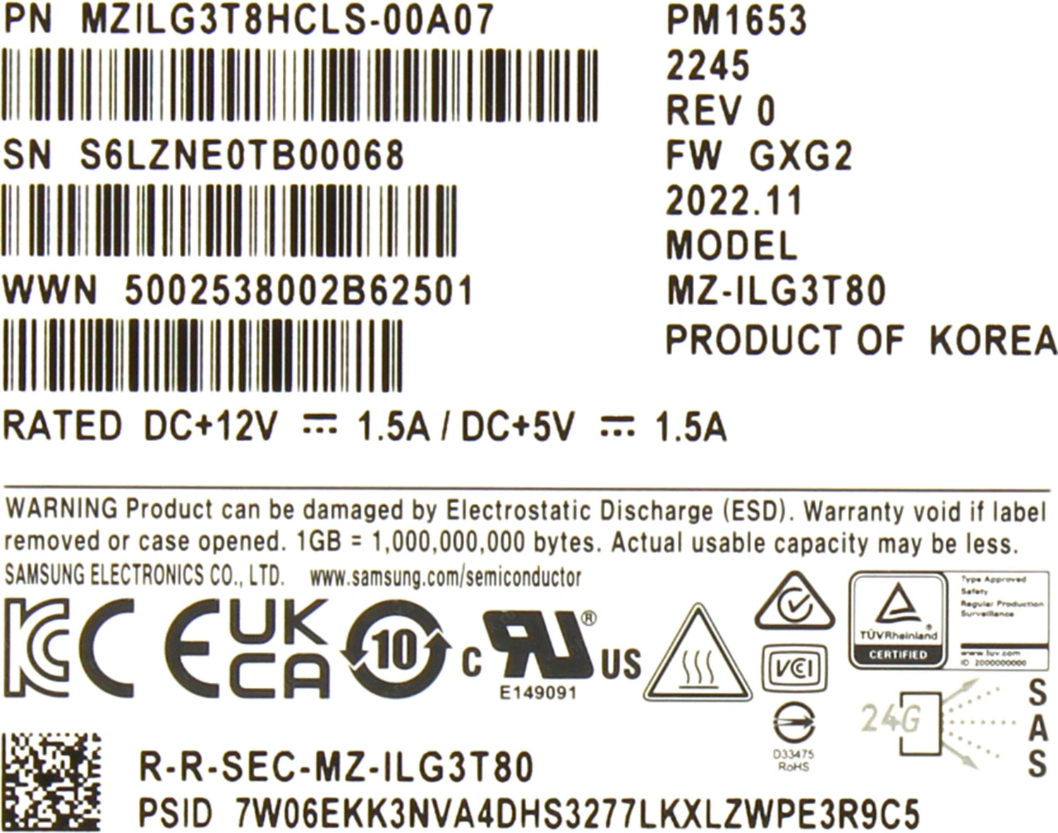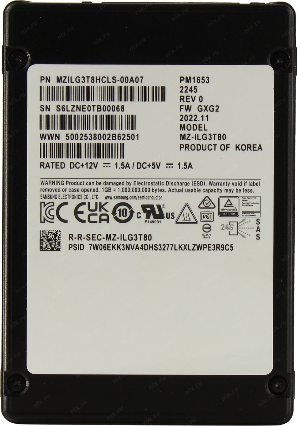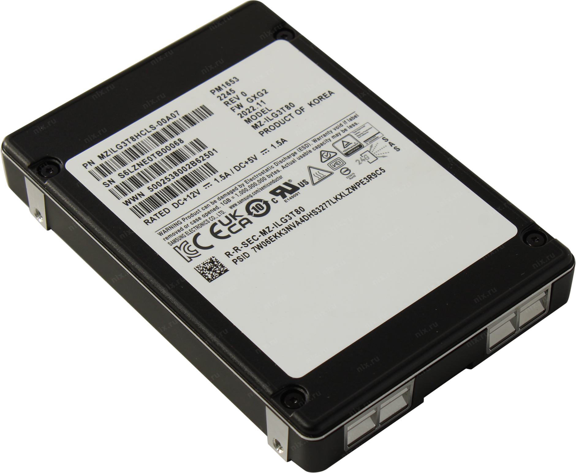 Твердотельный накопитель SSD Samsung Enterprise PM1653 MZILG3T8HCLS-00A07 2.5", 3840GB, SAS 24 Гб/с, 1DWPD (5Y)