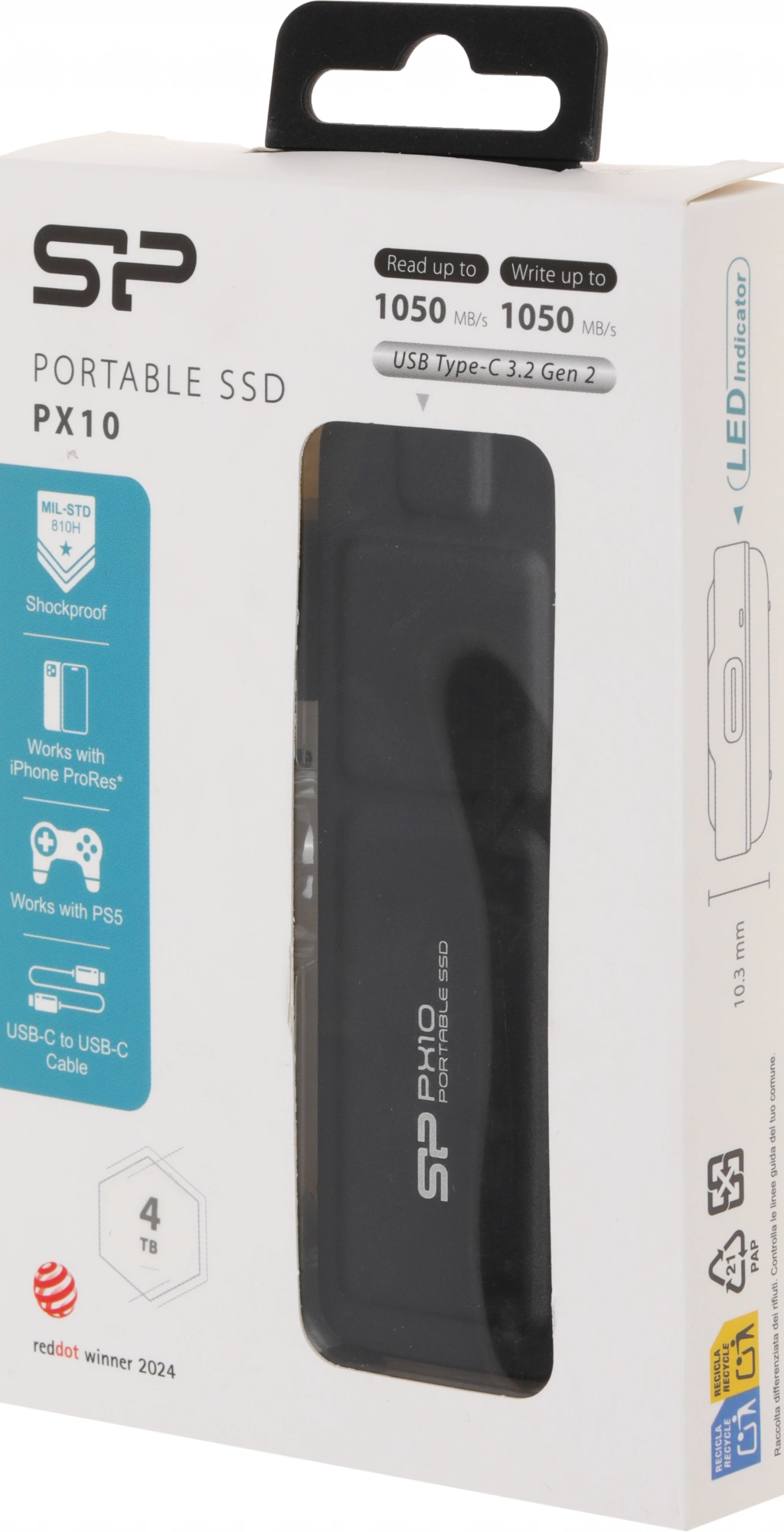 Накопитель SSD Silicon Power USB-C 4TB SP040TBPSDPX10CK PX10 черный