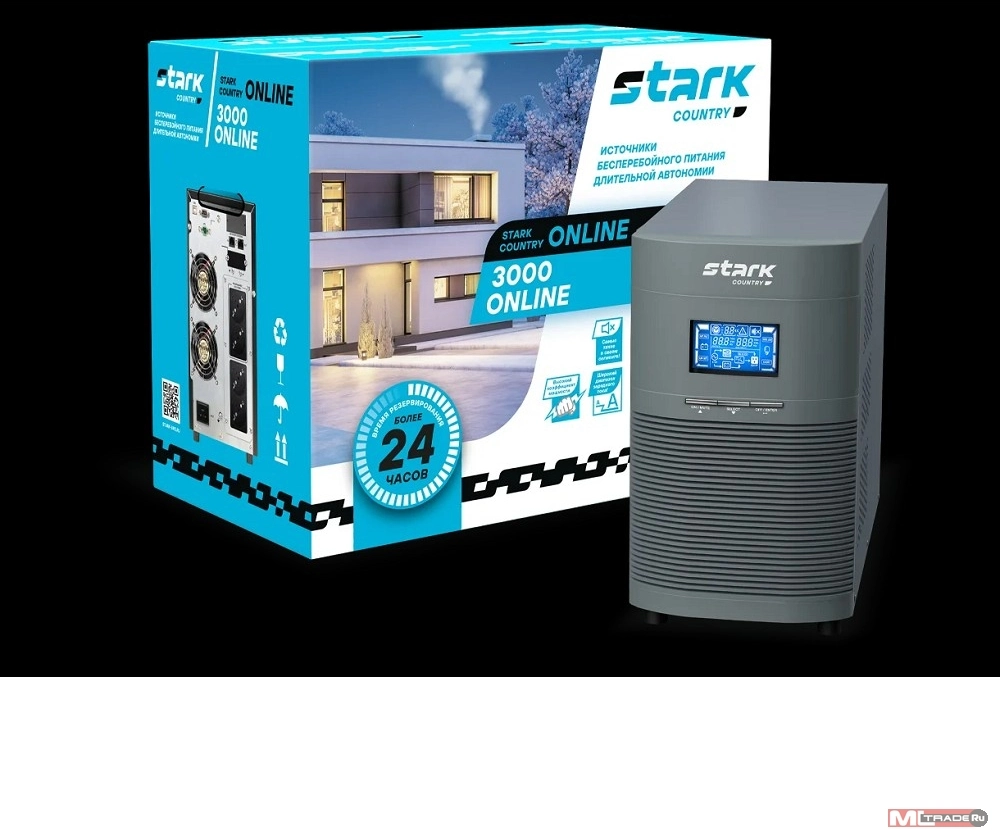 ИБП STARK SC 3000 Online 12A 3000 ВА/2700 Вт (Online, Напольный, 110-300В, 4 х ЕВРО, Smart-slot, USB, RS232, EPO, БЕЗ АКБ - внешние батареи 6 шт от 4,5Ач до 240 Ач) [SC3000ONLINE]