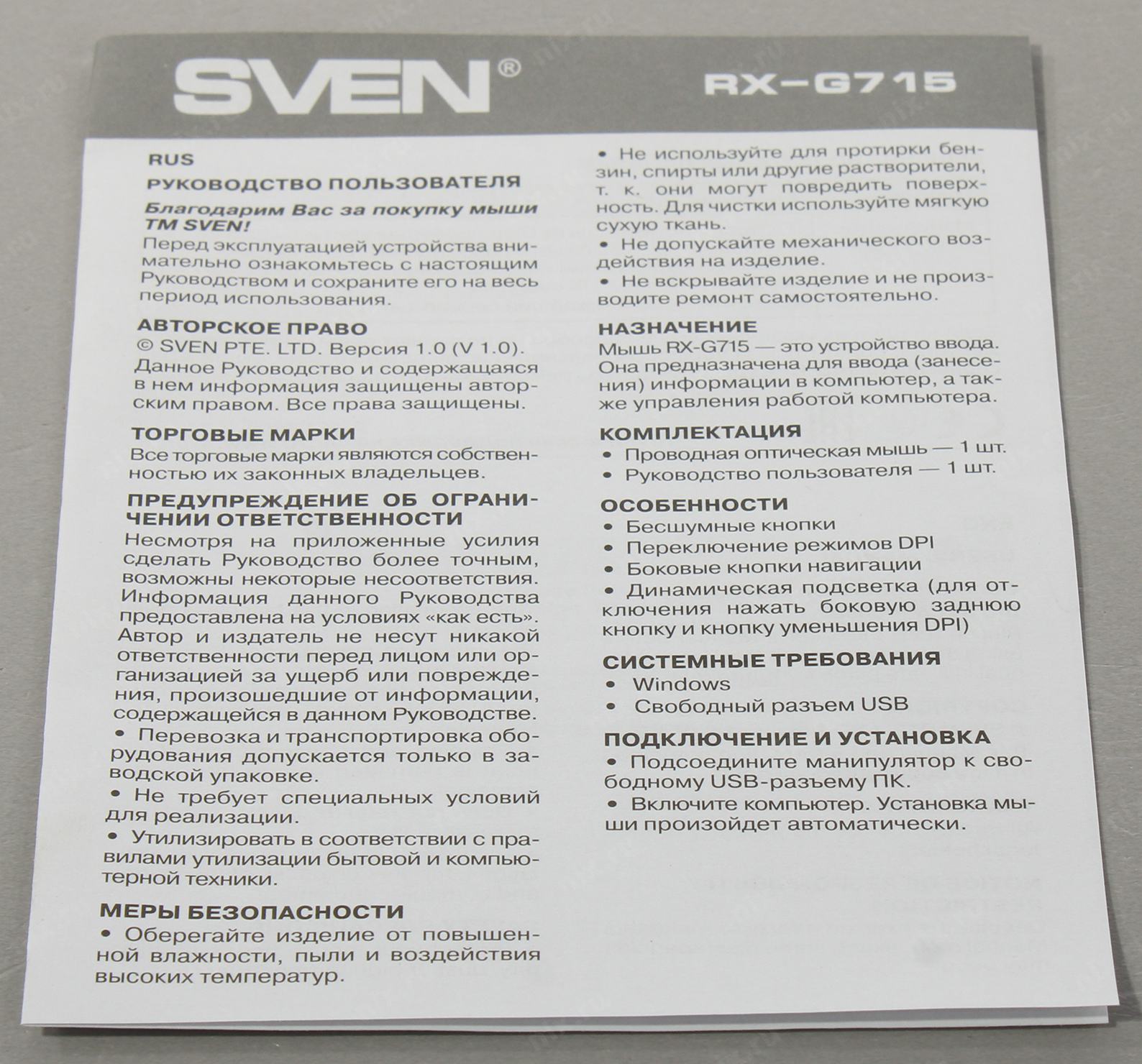 Мышь SVEN Gaming Optical Mouse <RX-G715 Black> (RTL) USB 8btn+Roll