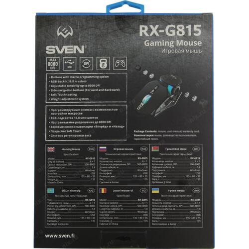 Мышь SVEN Gaming Optical Mouse <RX-G815 Black> (RTL) USB 7btn+Roll