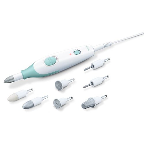 Набор для маникюра и педикюра, дизайн предотвращает скольжение во время обработки. 7 высококачественных насадок из сапфира и войлока. 2 настройки скорости: 3800/4600 об/мин ± 14%. Вращение по часовой стрелке/против часовой стрелки.