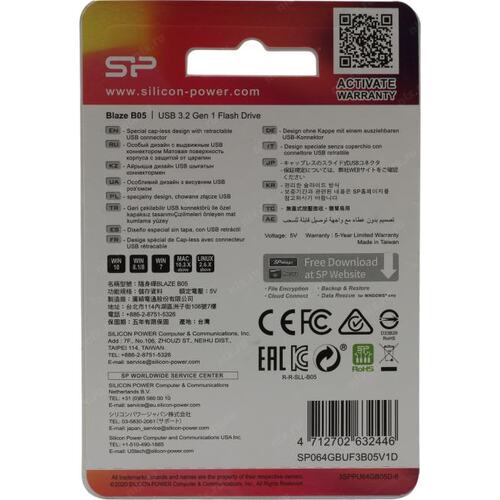 Носитель информации Silicon Power USB Drive 64Gb Blaze B05 SP064GBUF3B05V1D (USB3.0, Blue)