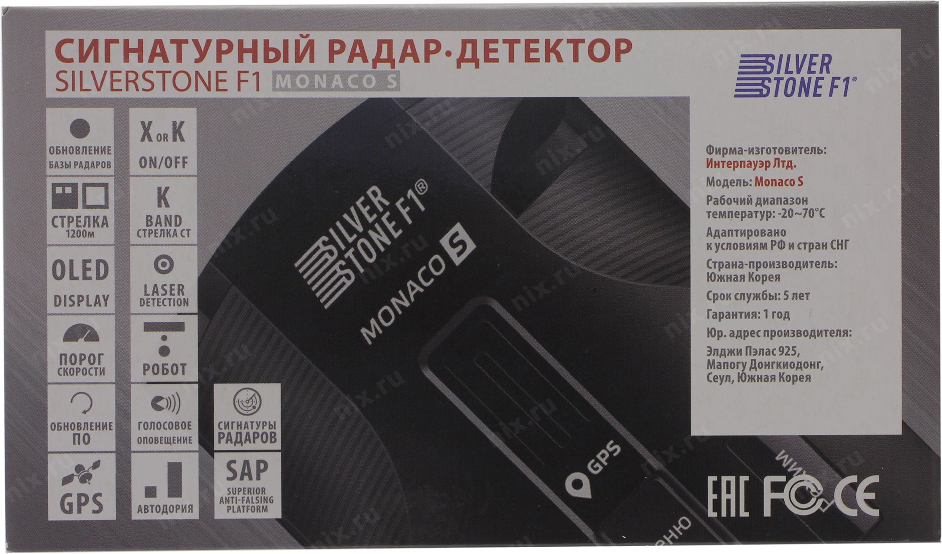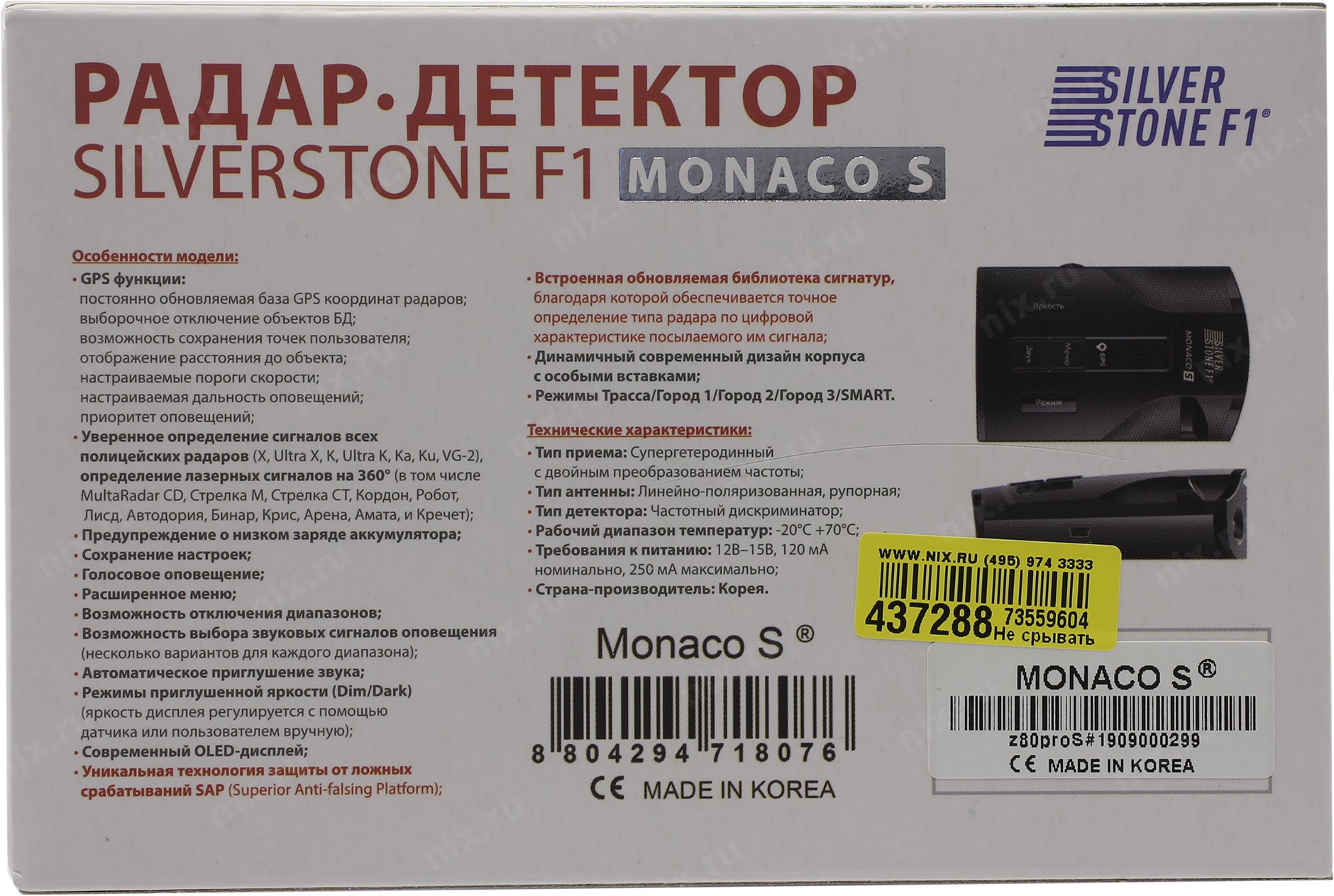 Видеорегистратор Silverstone F1 <Monaco S> (Радар-детектор, X/K/Ku/Ka, GPS)