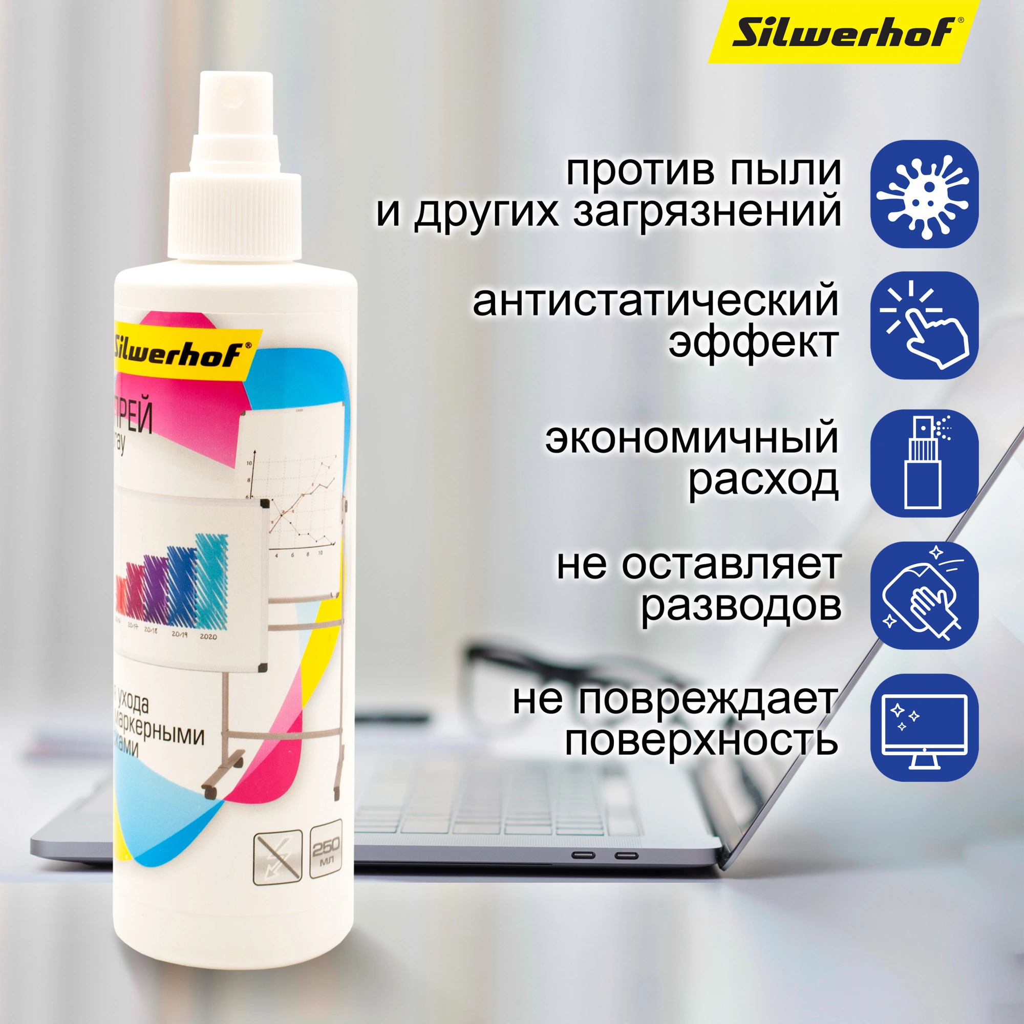 Спрей Silwerhof для маркерных досок 250мл 671209 (продается кратно 24 шт.)