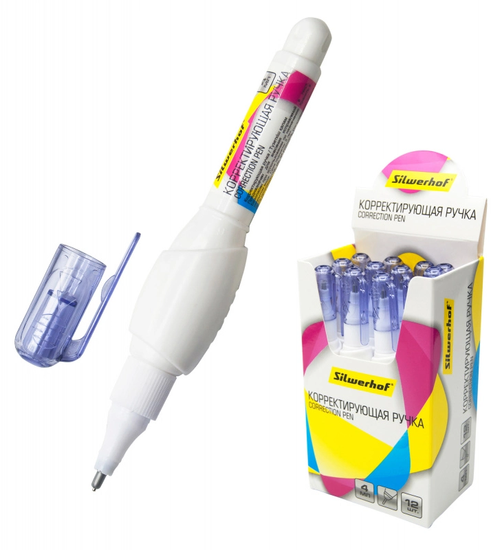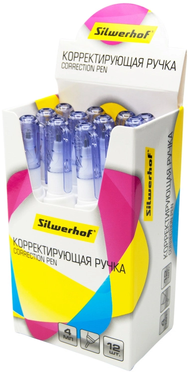Ручка корректор Silwerhof 443006 шариковый 4мл дисплей картонный (продается кратно 12 шт.)