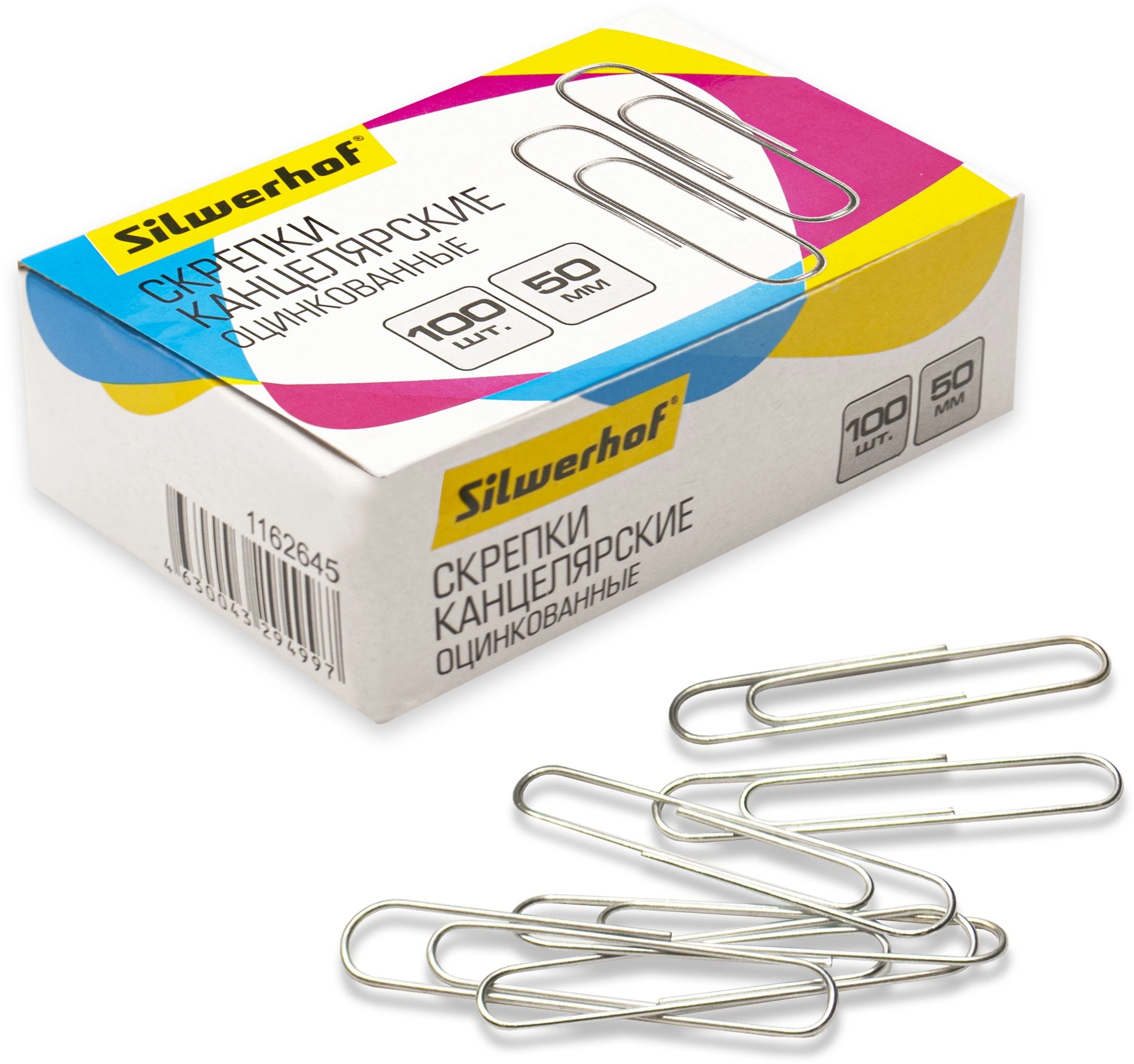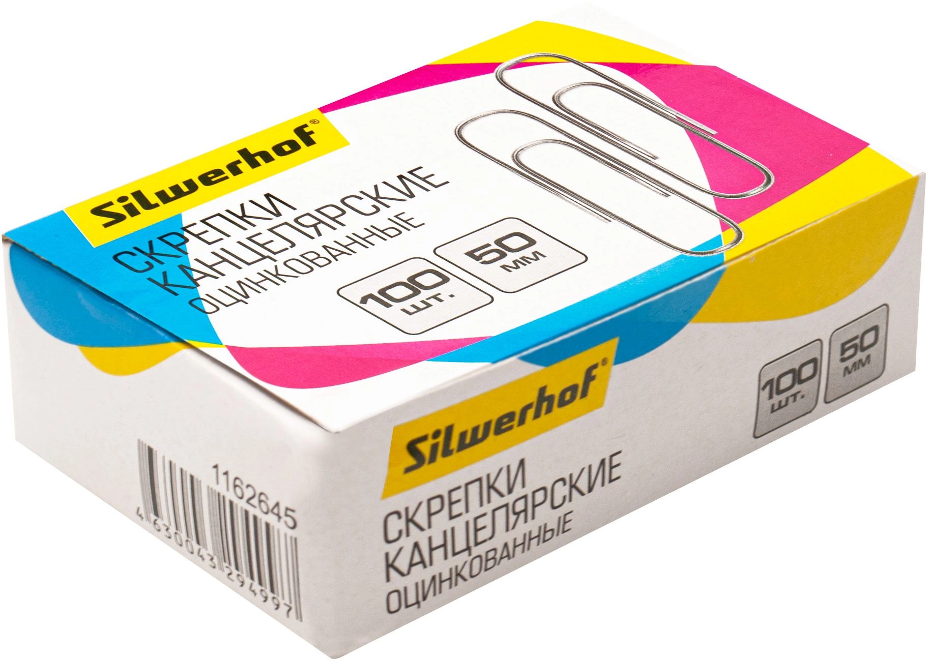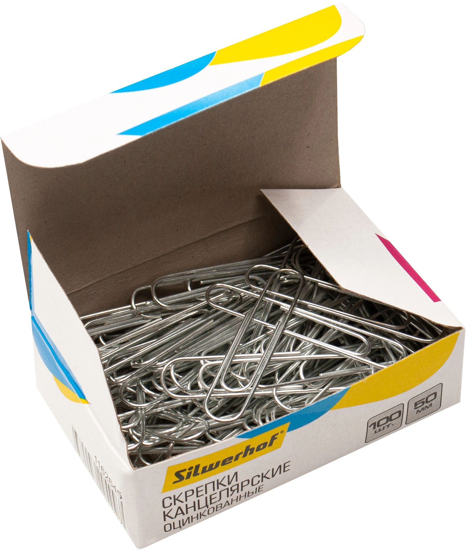 Скрепки Silwerhof 491037 металл оцинкованные 50мм (упак.:100шт) картонная коробка (продается кратно 50 шт.)