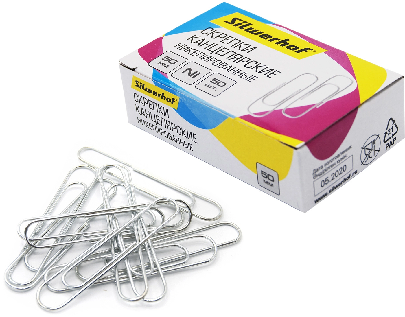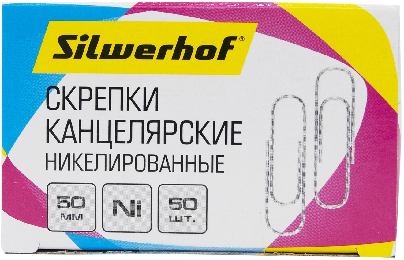 Скрепки Silwerhof никель 50мм (упак.:50шт) картонная коробка (продается кратно 10 шт.)