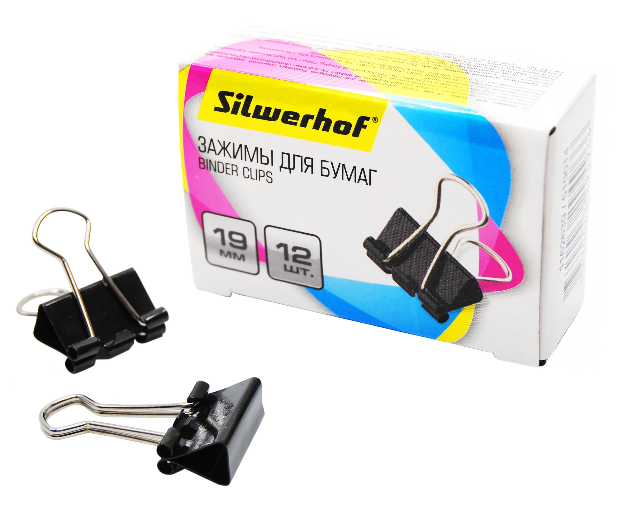 Зажимы Silwerhof 510014 сталь 19мм черный (упак.:12шт) картонная коробка (продается кратно 12 шт.)