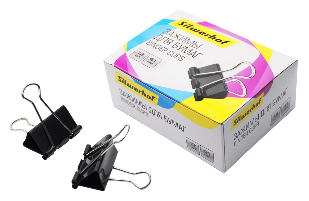 Зажимы Silwerhof 510017 сталь 41мм черный (упак.:12шт) картонная коробка (продается кратно 12 шт.)