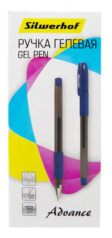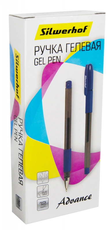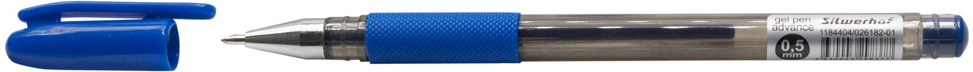 Ручка гелев. Silwerhof Advance (026182-01) d=0.5мм син. черн. кор.карт. сменный стержень линия 0.3мм резин. манжета (продается кратно 12 шт.)