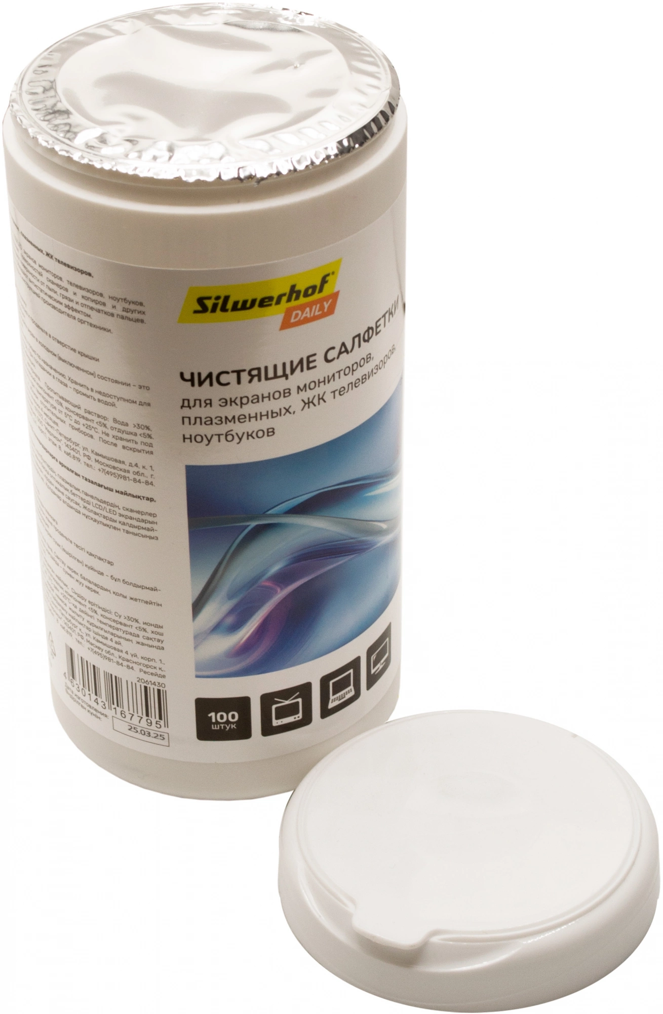 Салфетки Silwerhof DAILY для экранов мониторов/плазменных/ЖК телевизоров/ноутбуков туба 100шт влажных (продается кратно 12 шт.)
