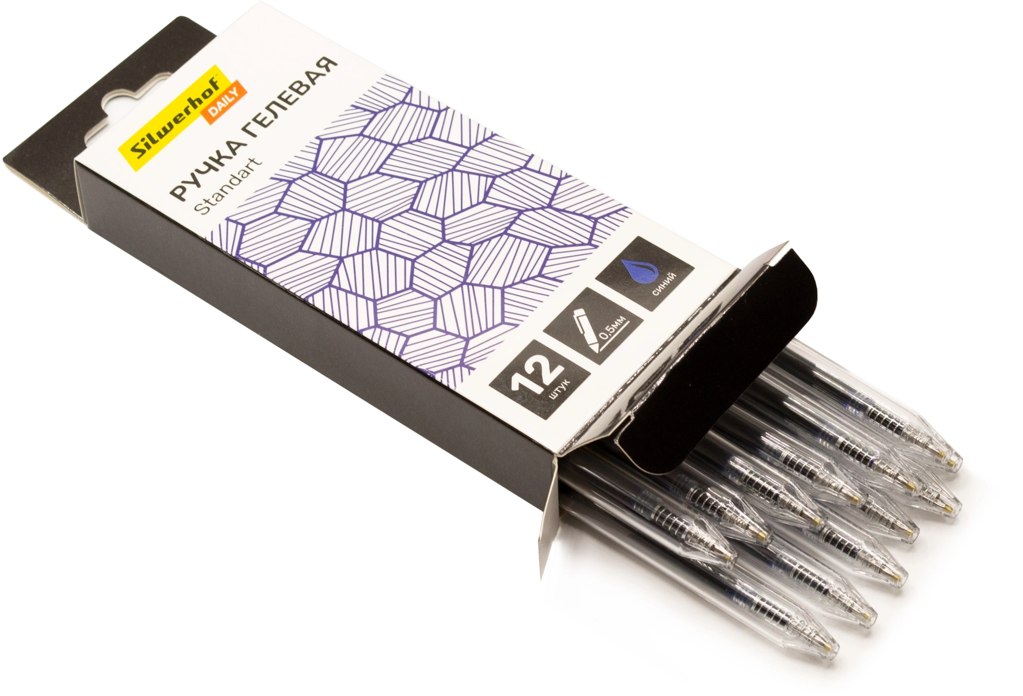 Набор ручек гелев. автоматическая Silwerhof Daily NG Standart d=0.5мм син. черн. кор.карт. (12шт) линия 0.3мм (продается кратно 12 шт.)