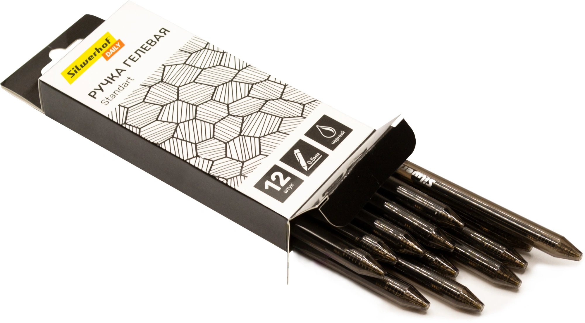 Набор ручек гелев. автоматическая Silwerhof Daily NG Standart d=0.5мм черн. черн. кор.карт. (12шт) линия 0.3мм (продается кратно 12 шт.)
