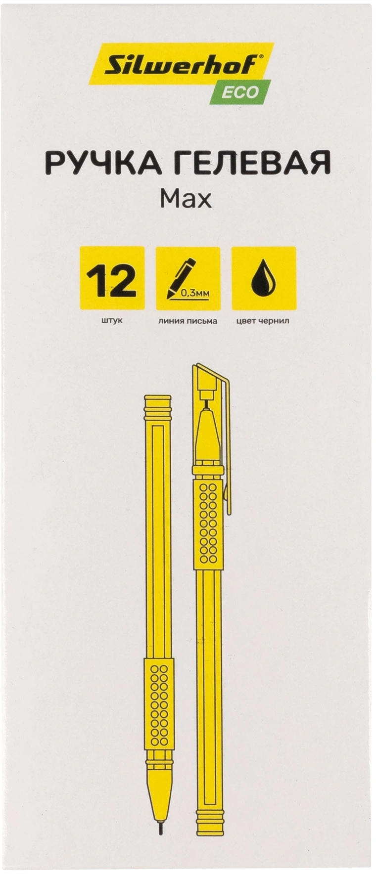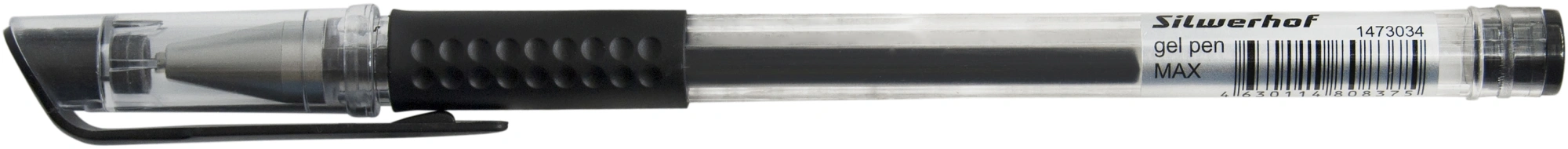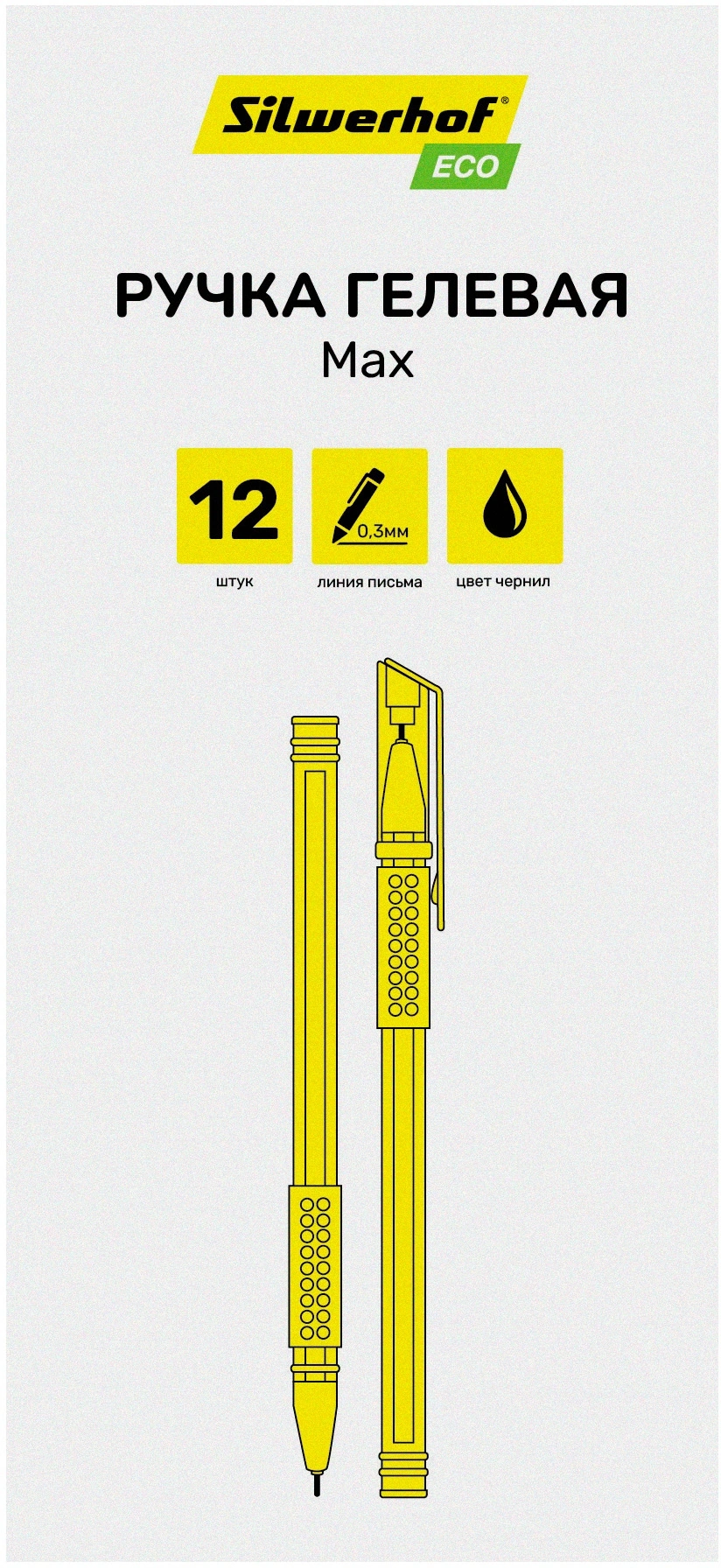 Ручка гелев. Silwerhof Eco Max d=0.5мм черн. черн. кор.карт. сменный стержень линия 0.3мм резин. манжета (продается кратно 12 шт.)