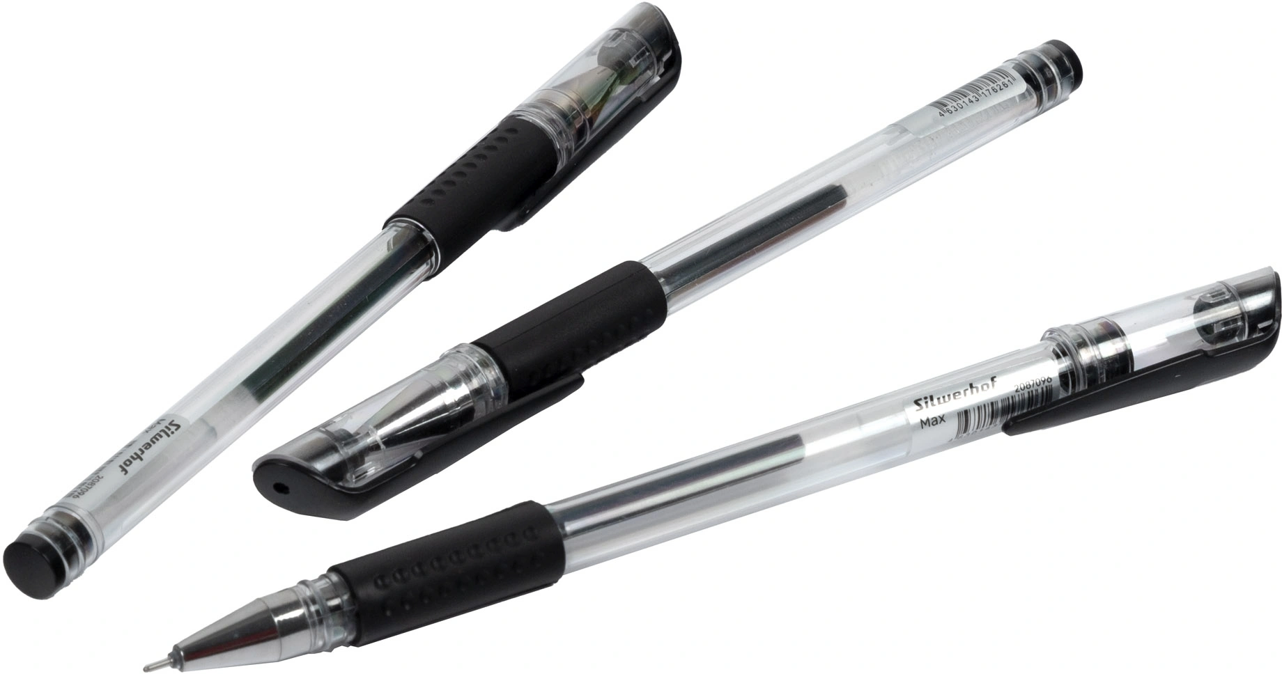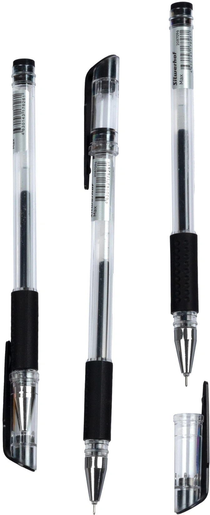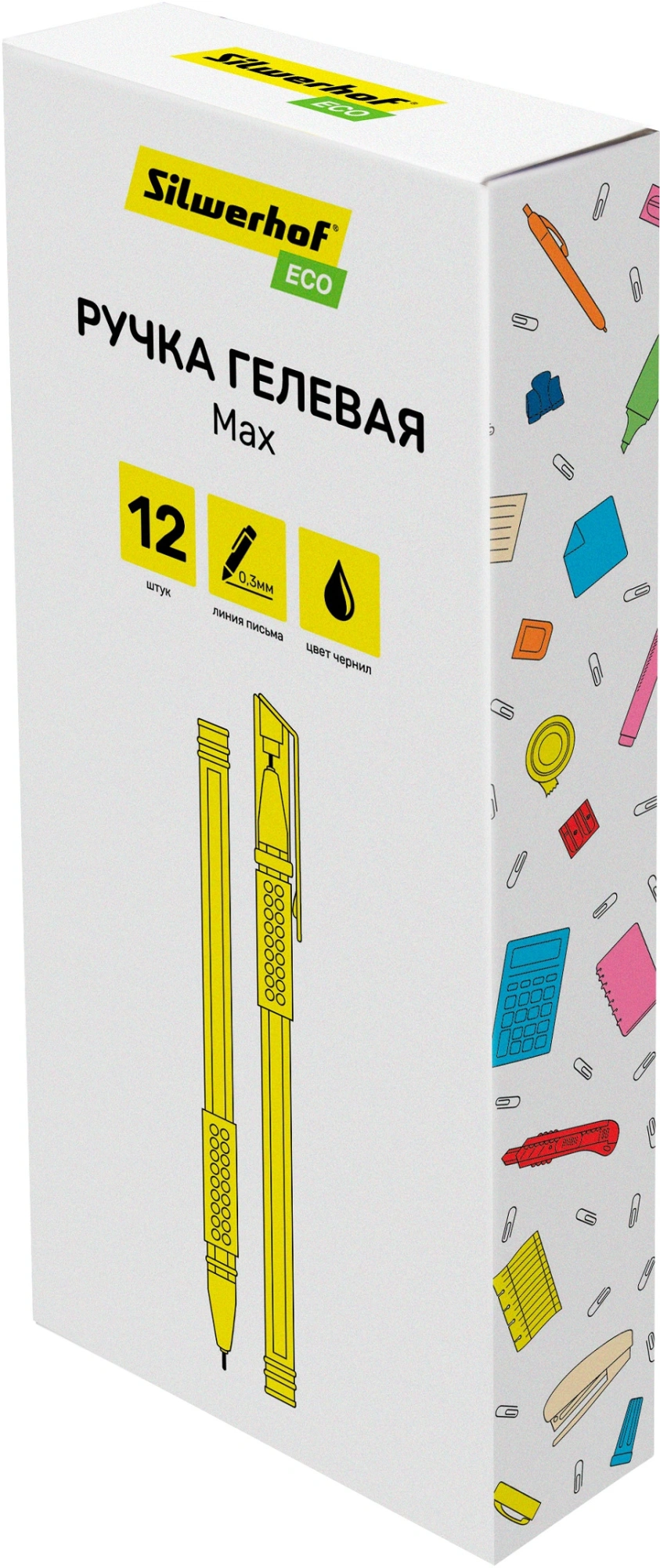 Ручка гелев. Silwerhof Eco Max d=0.5мм черн. черн. кор.карт. сменный стержень линия 0.3мм резин. манжета (продается кратно 12 шт.)