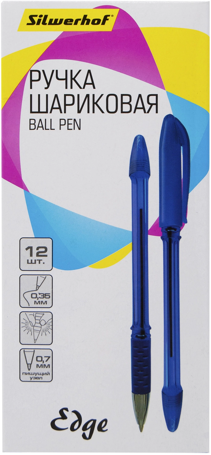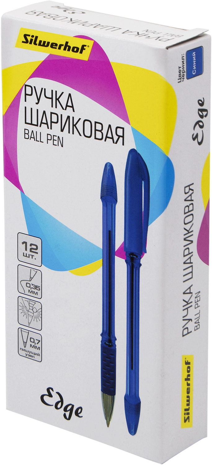 Ручка шариков. Silwerhof Edge d=0.7мм син. черн. сменный стержень линия 0.35мм резин. манжета серебристый (продается кратно 12 шт.)