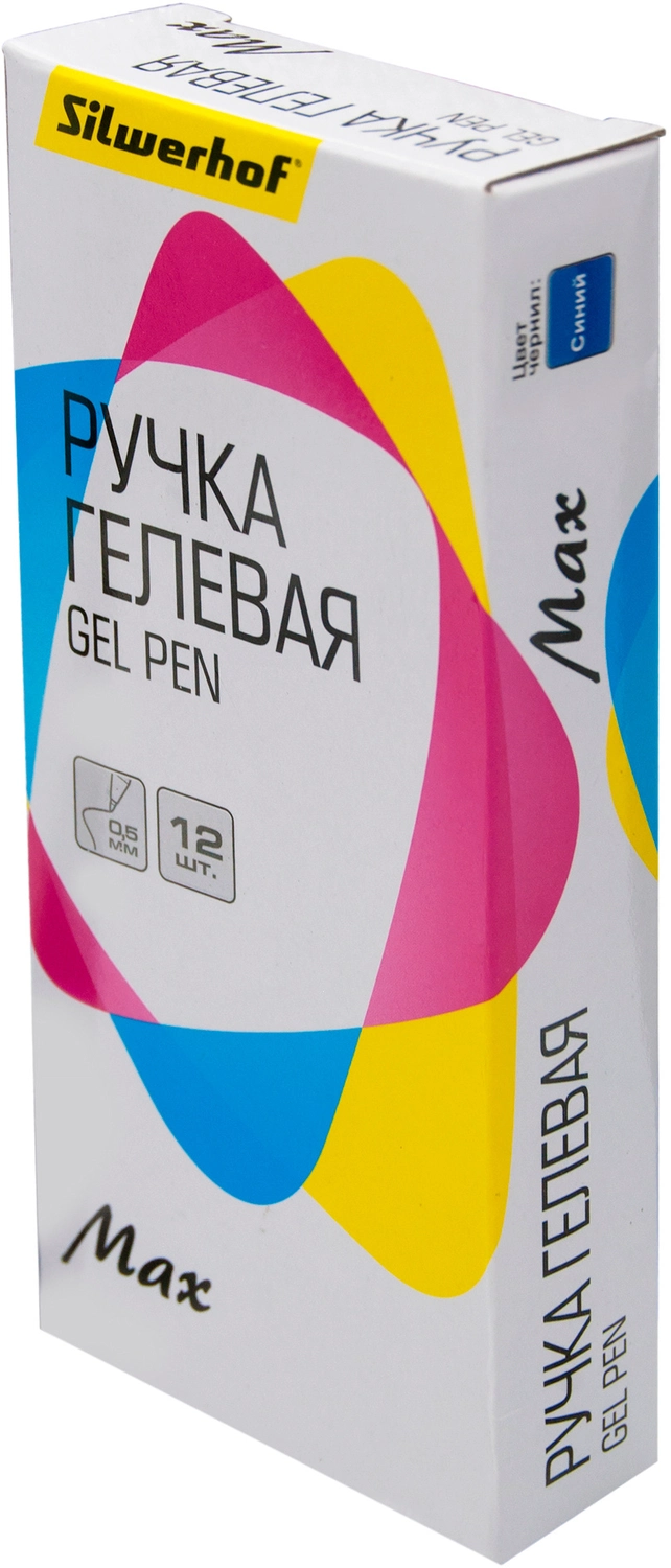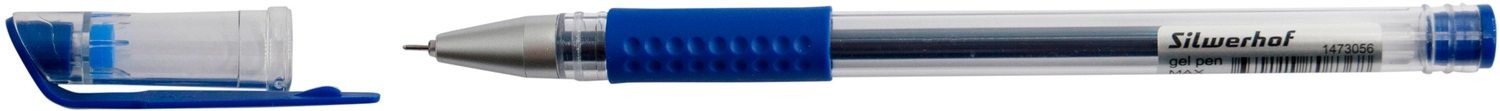 Ручка гелев. Silwerhof Max d=0.5мм син. черн. кор.карт. сменный стержень линия 0.3мм резин. манжета (продается кратно 12 шт.)