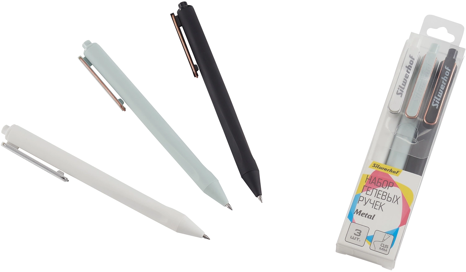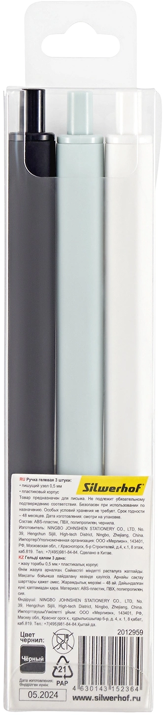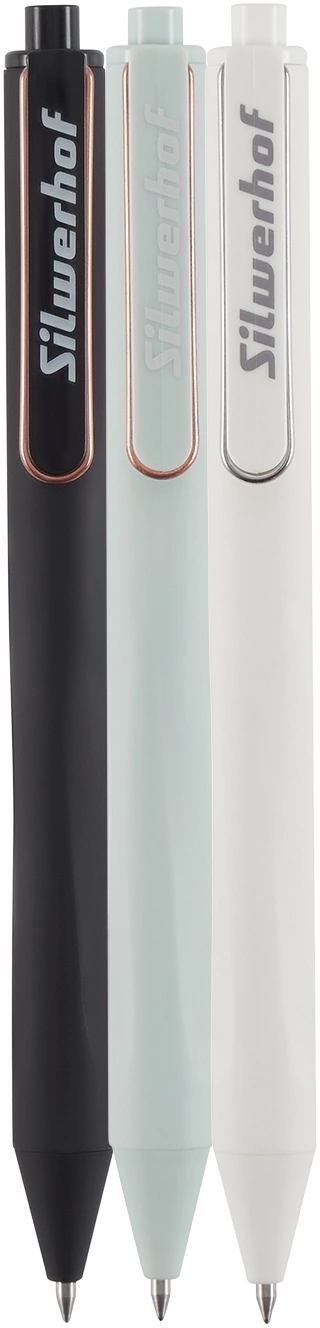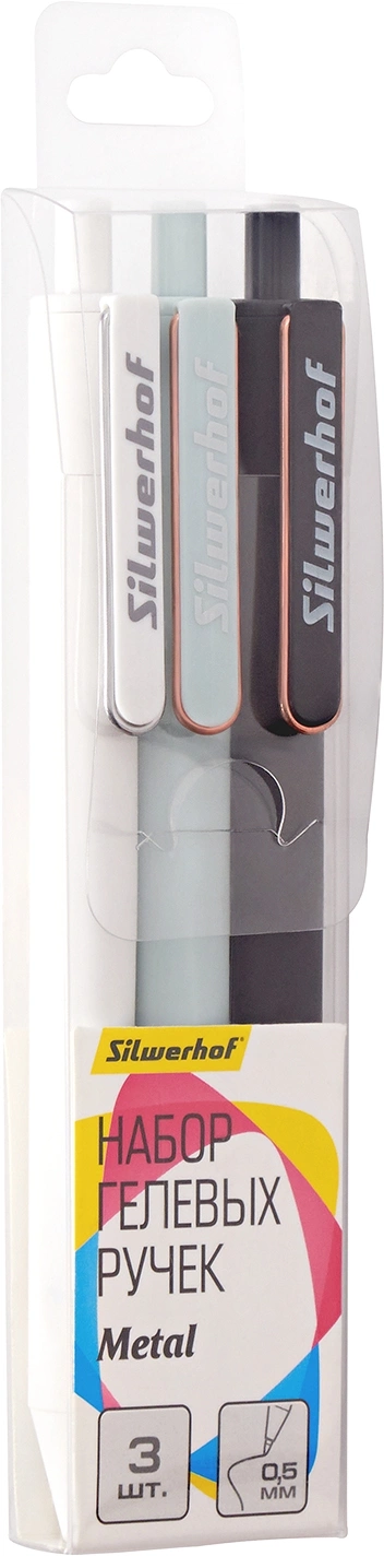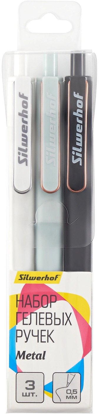 Набор ручек гелев. автоматическая Silwerhof NG Metal d=0.5мм син. черн. блистер ев. (3шт) сменный стержень (продается кратно 24 шт.)