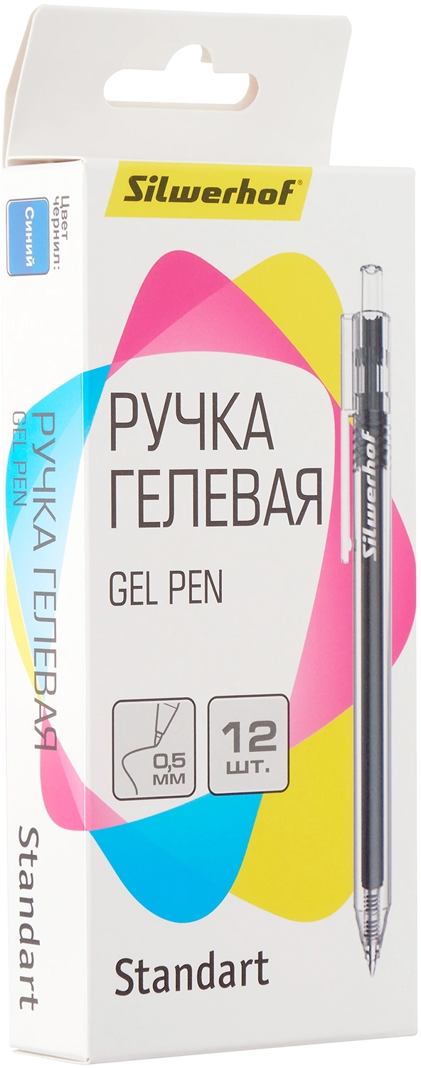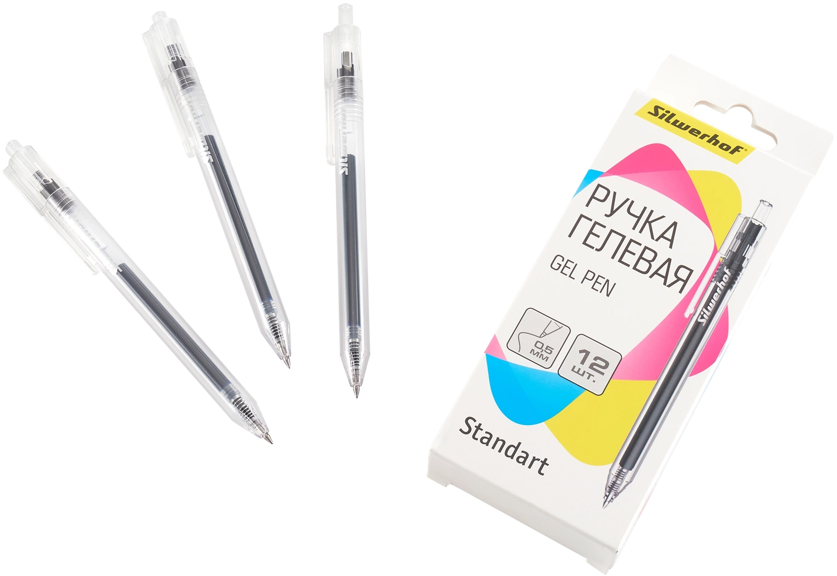 Набор ручек гелев. автоматическая Silwerhof NG Standart d=0.5мм син. черн. кор.карт. (12шт) (продается кратно 12 шт.)