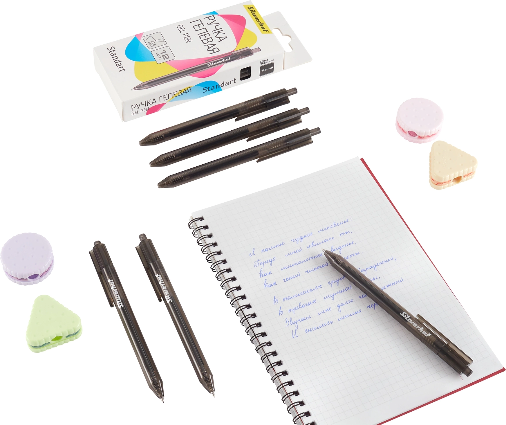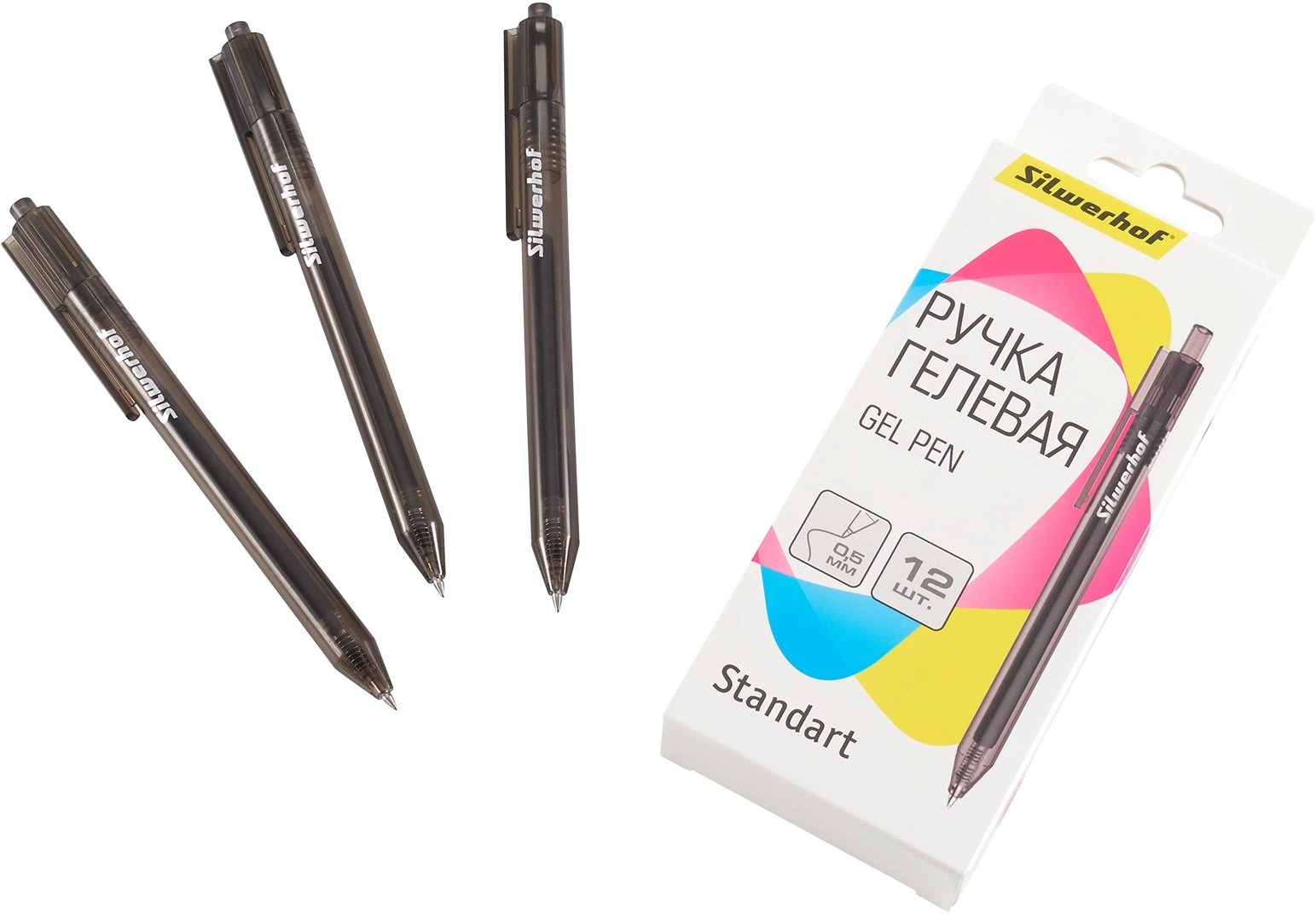 Набор ручек гелев. автоматическая Silwerhof NG Standart d=0.5мм черн. черн. кор.карт. (12шт) (продается кратно 12 шт.)