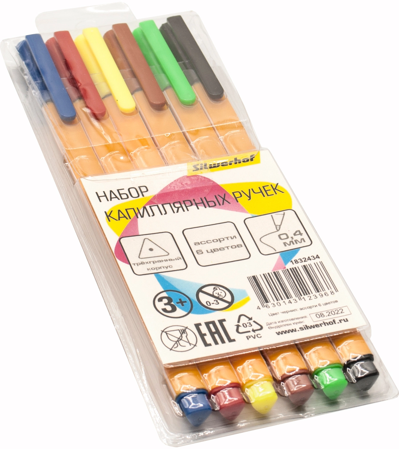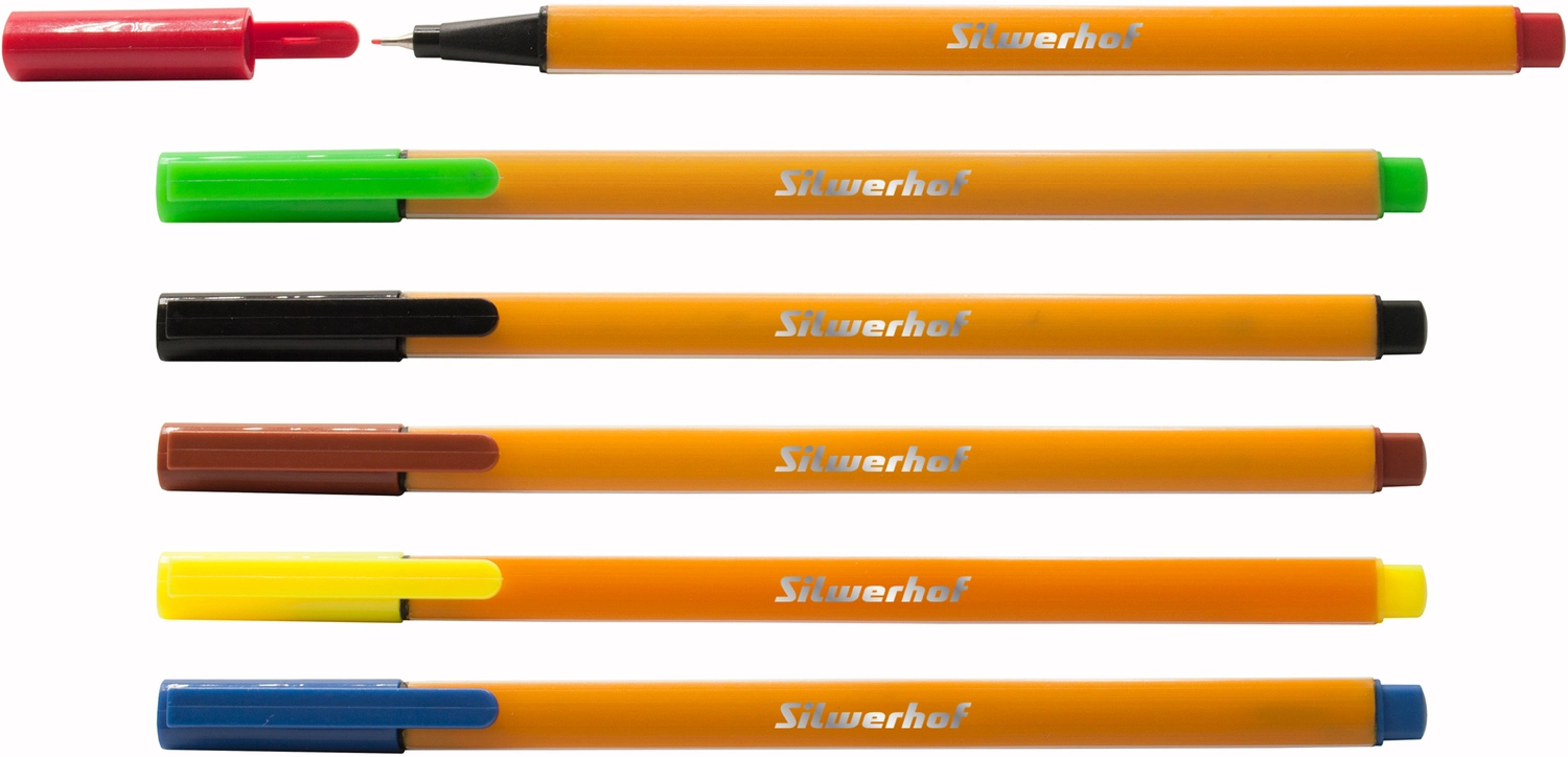 Набор ручек капилляр. Silwerhof ассор. черн. индив. пак.ев. (6шт) игловидный пиш. наконечник линия 0.4мм треугол.