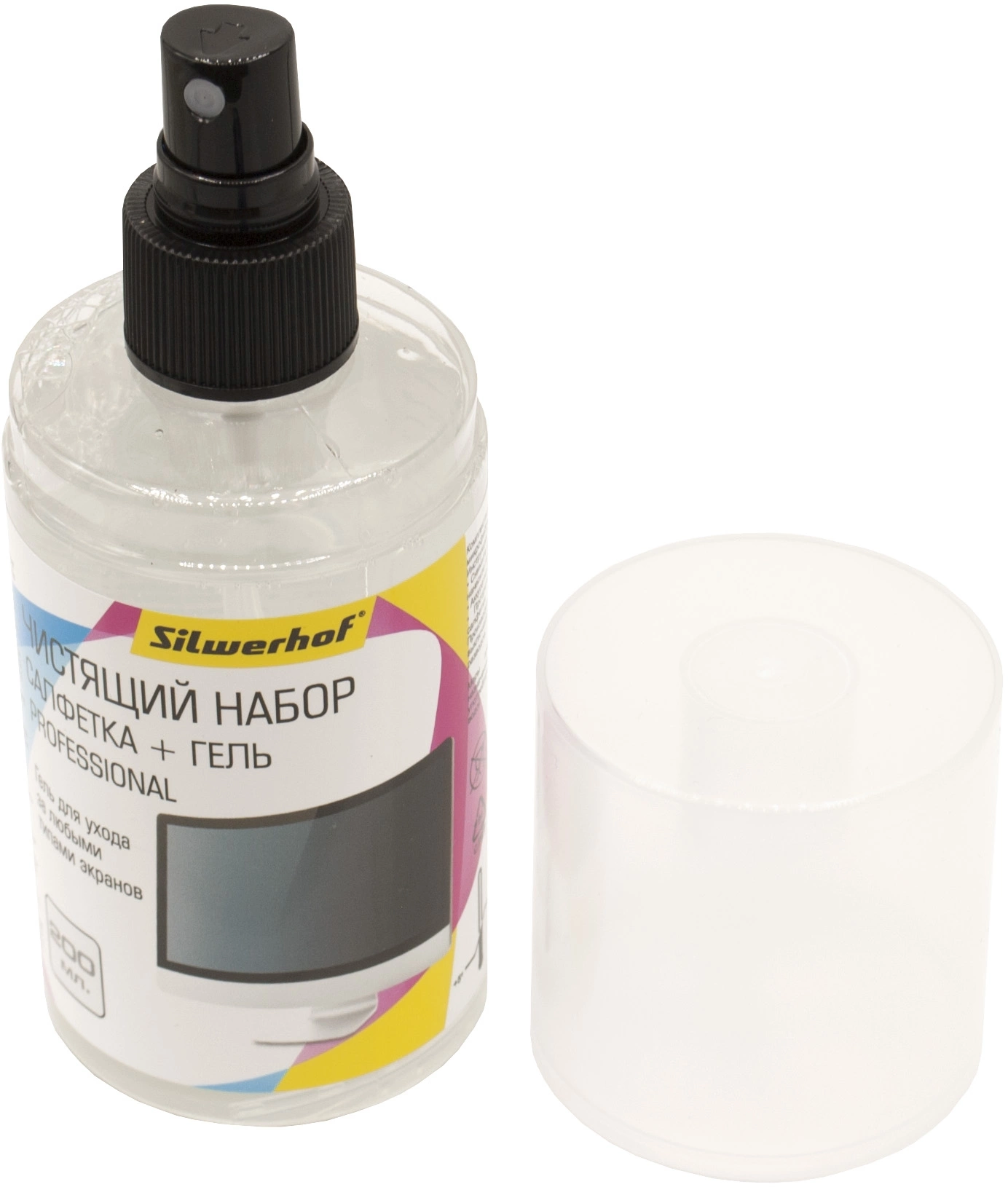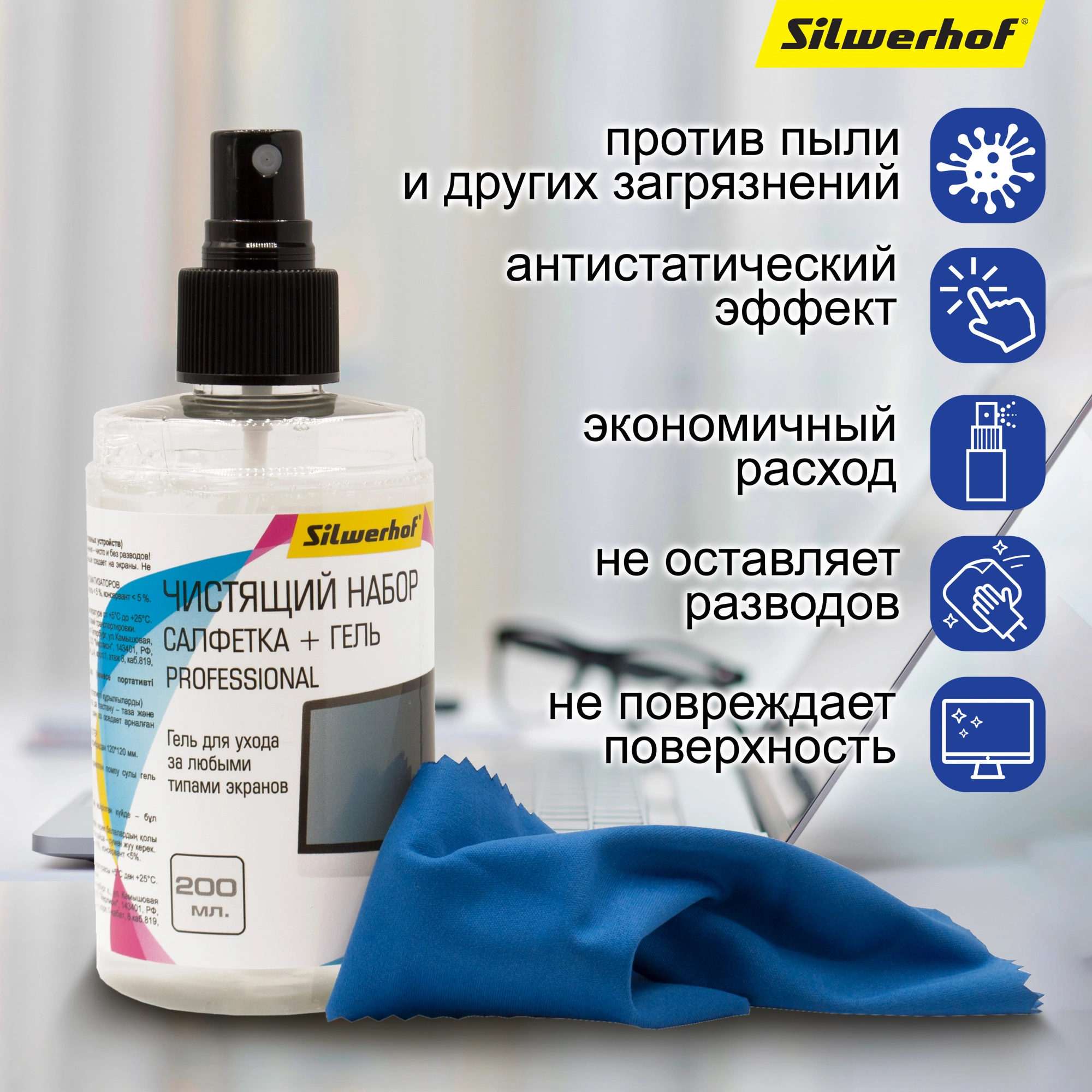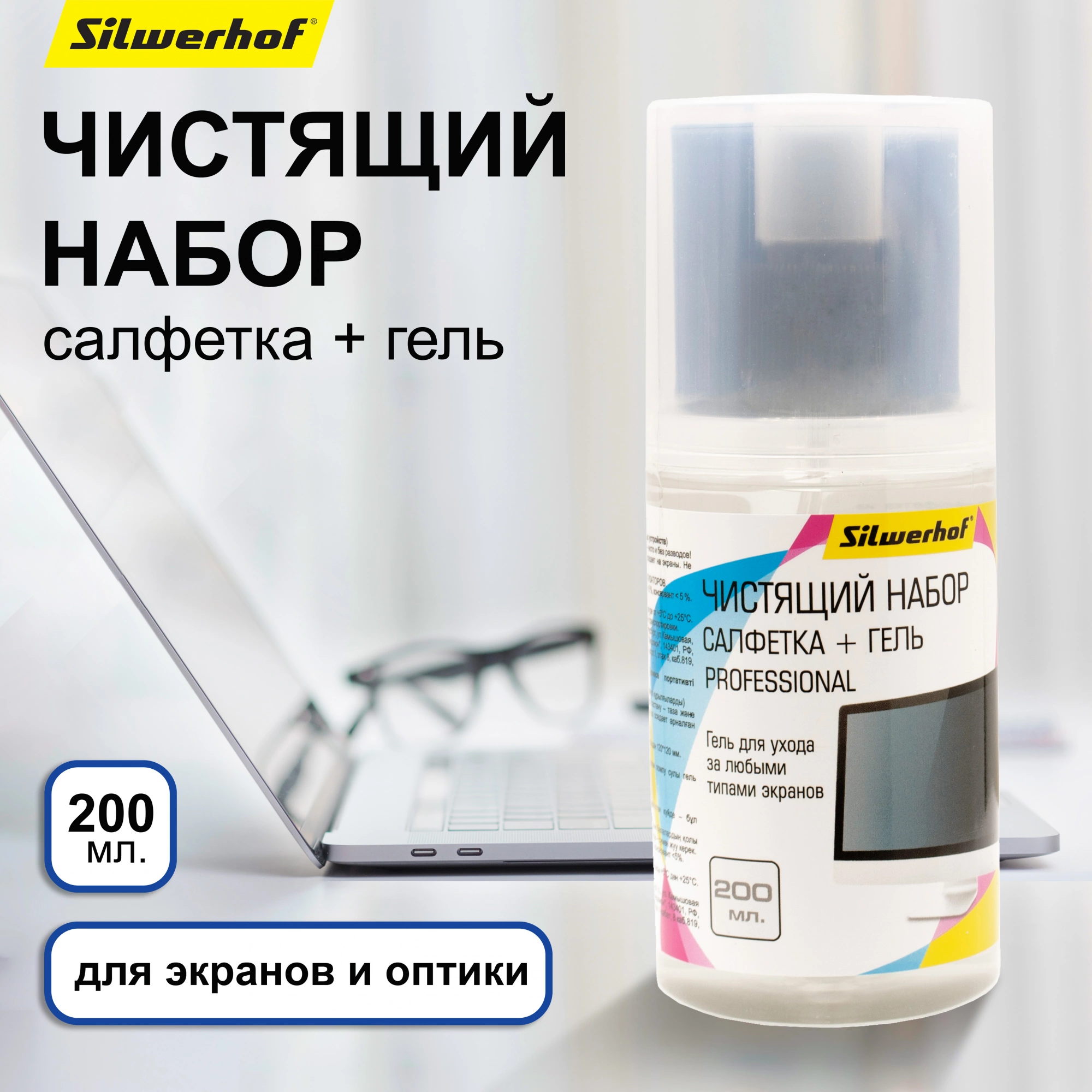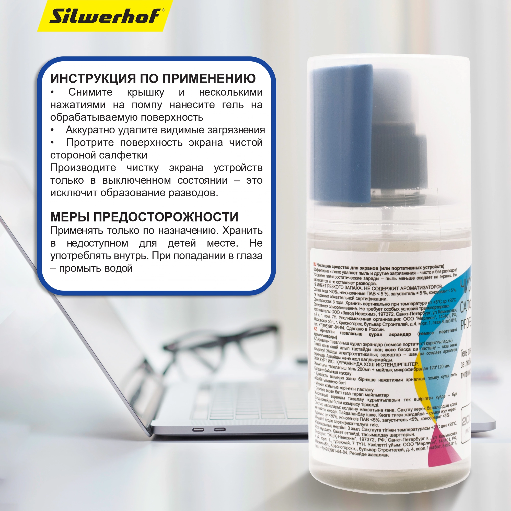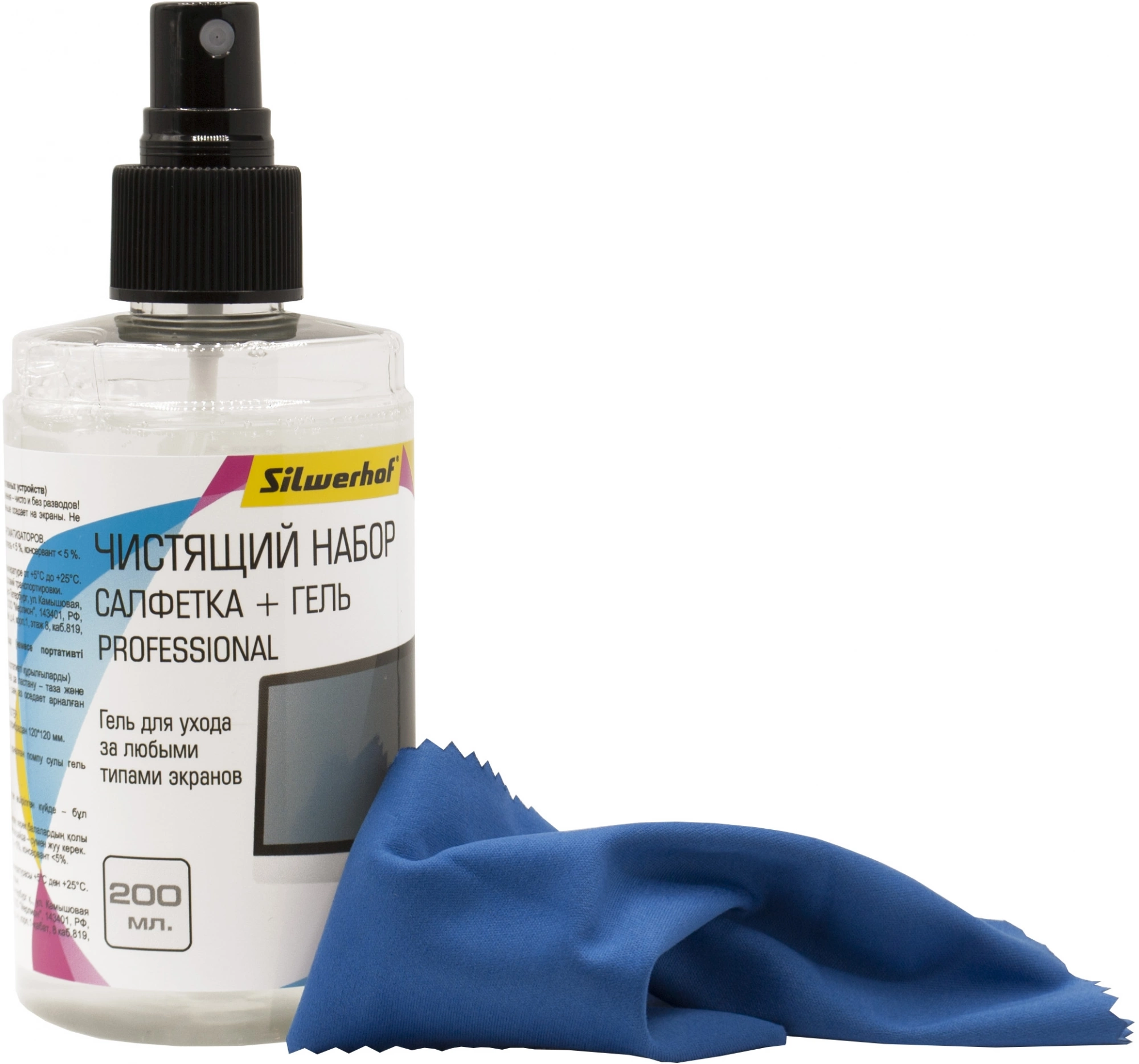 Чистящий набор (салфетка + гель) Silwerhof для экранов и оптики 200мл (продается кратно 12 шт.)