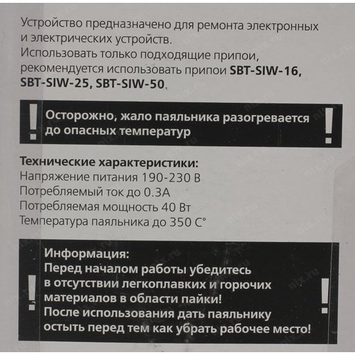 Паяльное оборудование Smart buy Smartbuy (SBT-SI-40) Паяльник электрический, 40 Вт, термостойкая рукоятка, длина шнура 0.8 м, | НИКС Екатеринбург