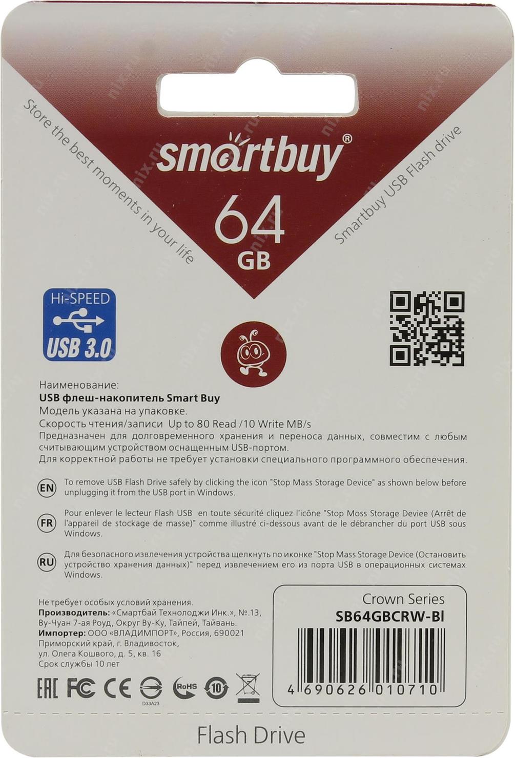 Накопитель SmartBuy Crown <SB64GBCRW-Bl> USB3.0 Flash Drive 64Gb (RTL) | НИКС Екатеринбург