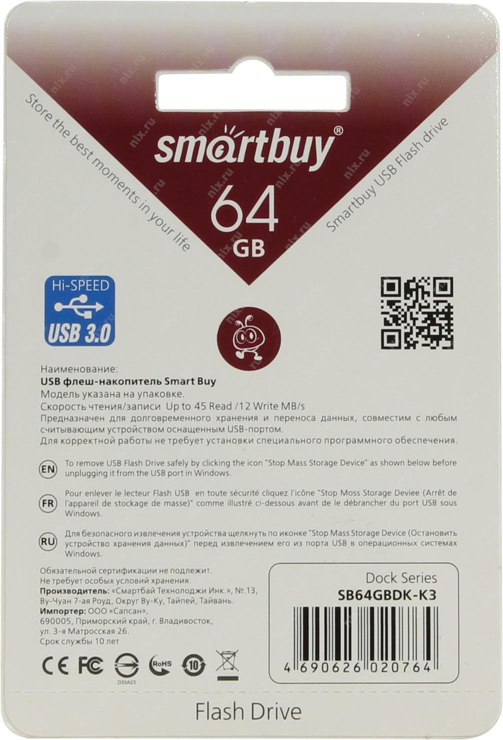 Накопитель SmartBuy Dock <SB64GBDK-K3> USB3.0 Flash Drive 64Gb (RTL)