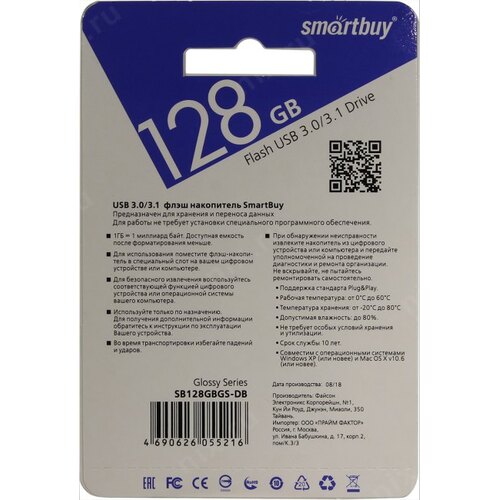 Накопитель SmartBuy Glossy <SB128GBGS-DB> USB3.0 Flash Drive 128Gb (RTL)