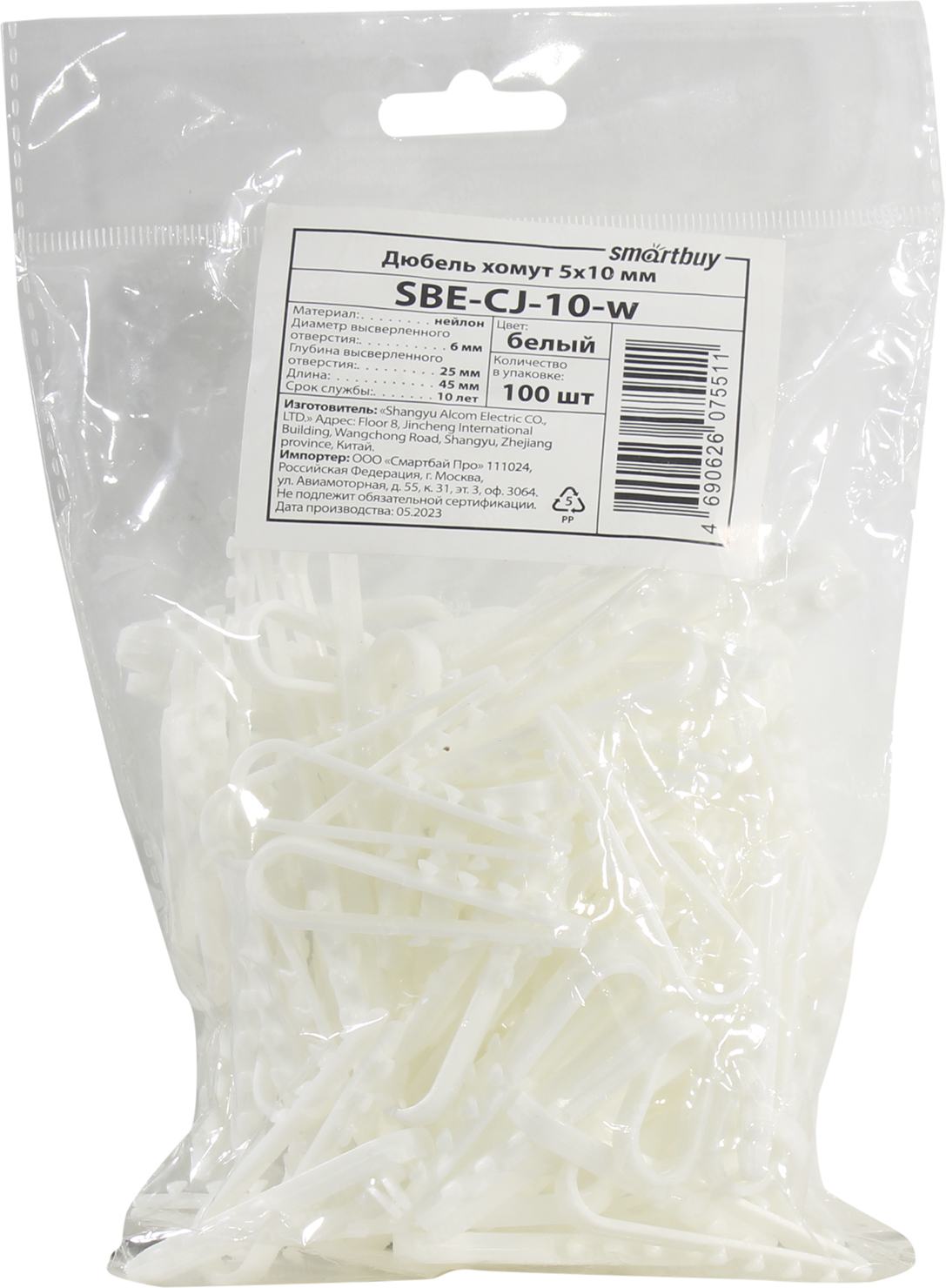 Smartbuy <SBE-CJ-10-w White> Дюбель-хомут 5x10мм, уп-ка 100 шт