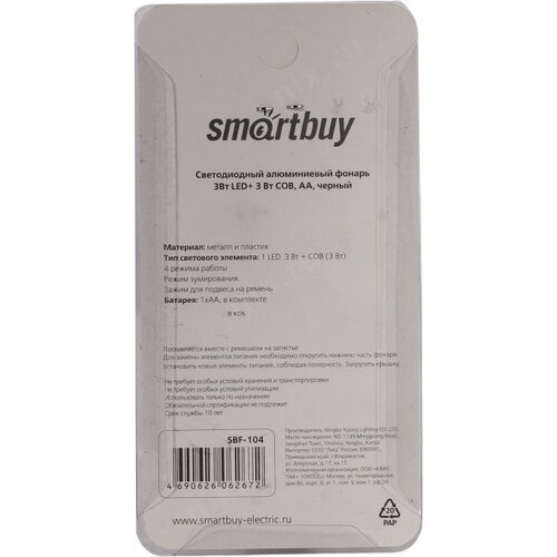 Фонарь Smartbuy <SBF-104> (1 светодиод + 1 COB, 1xAA) | НИКС Екатеринбург