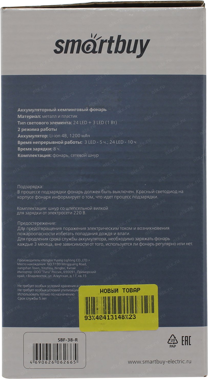 Фонарь Smartbuy <SBF-38-R> (кемпинговый фонарь, 24 светодиода, аккум+З/У)