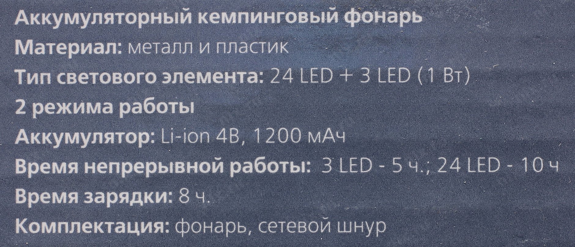 до 5 часов в режиме переносного фонаря, до 10 часов в кемпинговом режиме