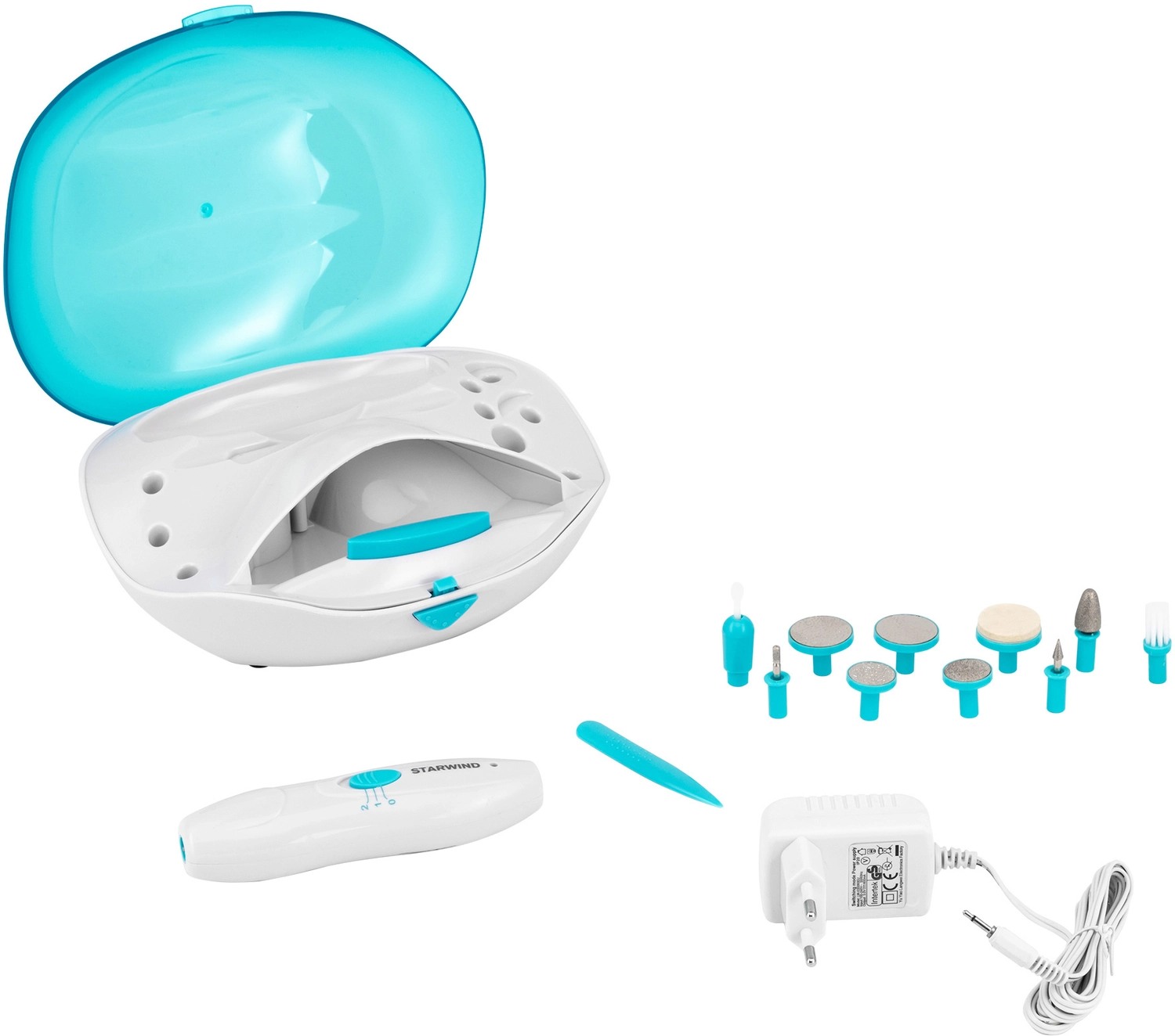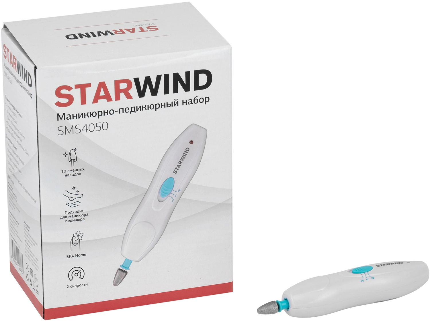 Маникюрно-педикюрный набор Starwind SMS 4050 насадок в компл.:10шт белый/синий