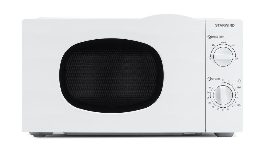 Микроволновая печь Starwind SWM6520 разогреет пищу до нужной температуры за считанные минуты. Максимальная мощность данной модели составляет 700 Вт. Но её можно варьировать в зависимости от потребностей. Для переключения температурных режимов на приборе присутствует эргономичный поворотный регулятор. На нём также предусмотрена разморозка в качестве отдельной опции. Она позволяет медленно подогревать замороженные продукты. Максимальное значение таймера устройства - 35 минут. По истечении заданного времени микроволновка издаёт характерный звук. Органов управления на Starwind SWM6520 всего два - это таймер и колесо переключения режимов. Её интерфейс интуитивен и прост. При своих скромных габаритах и весе Starwind SWM652 весьма вместительна. Внутренний объём устройства составляет 20 л. Этого достаточно, чтобы разогреть даже большое блюдо. Материалы, из которых выполнена данная модель, не требуют особого ухода. Их достаточно протирать влажной тканью по мере надобности. Минималистичный дизайн и белый цвет Starwind SWM6520 позволят микроволновой печи вписаться в любой кухонный интерьер.