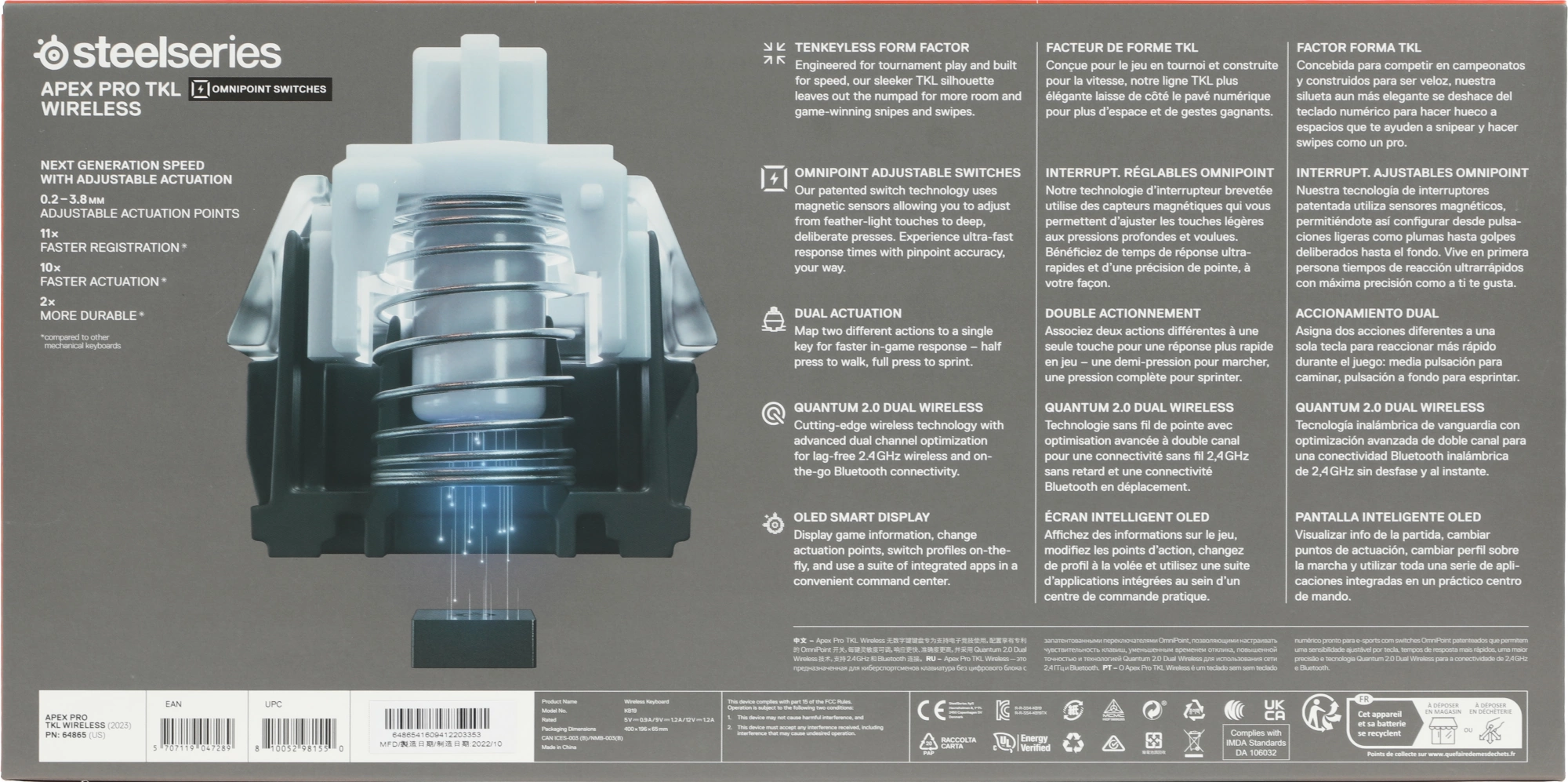 Клавиатура Steelseries Apex Pro TKL Wireless (2023) механическая черный USB for gamer LED (подставка для запястий) (64865)
