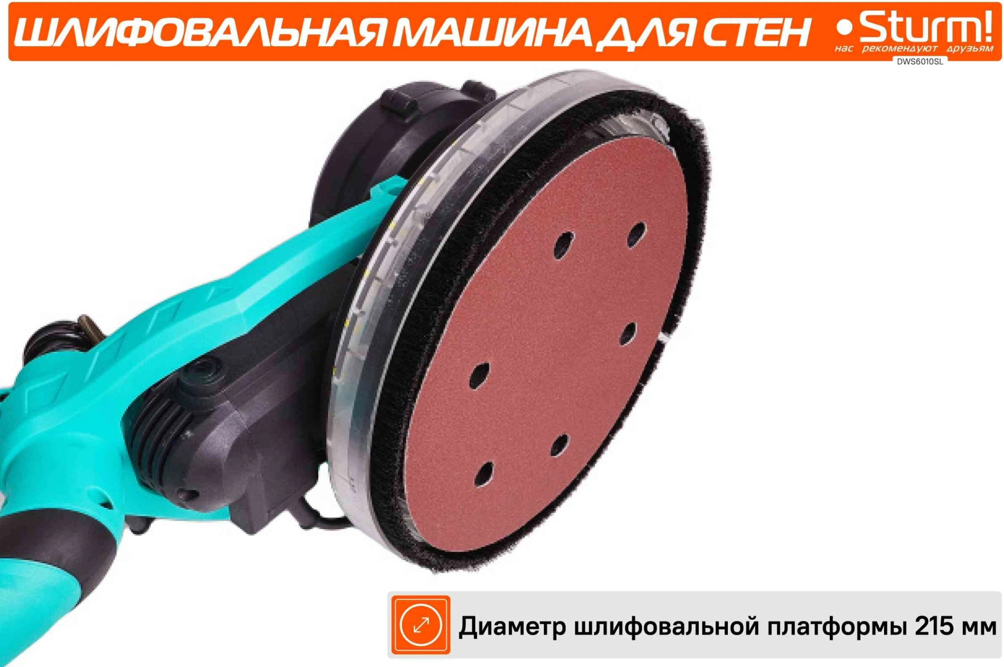 Полировальная машина Sturm! DWS6010SL 1000Вт 6000об/мин рез.шпин.:M14 d=215мм жестк.кейс