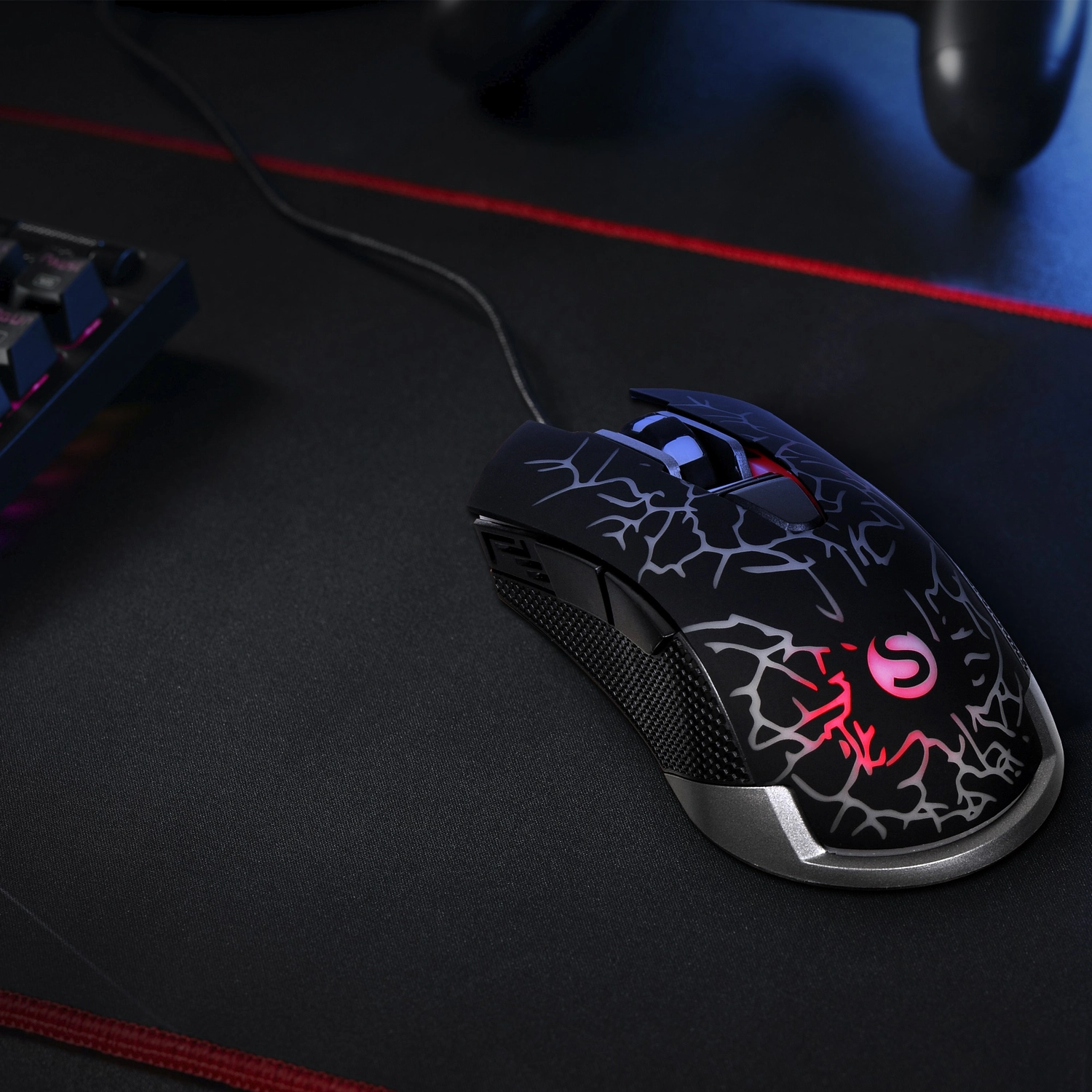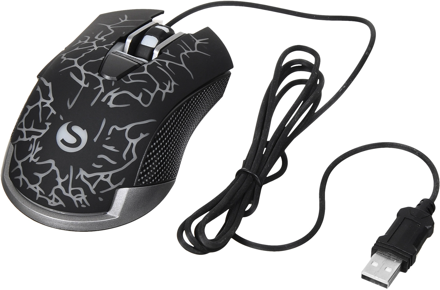 Игровая мышь с динамической подсветкой, оптический датчик высокого разрешения, кабель в прочной оплетке, рифленые боковые вставки