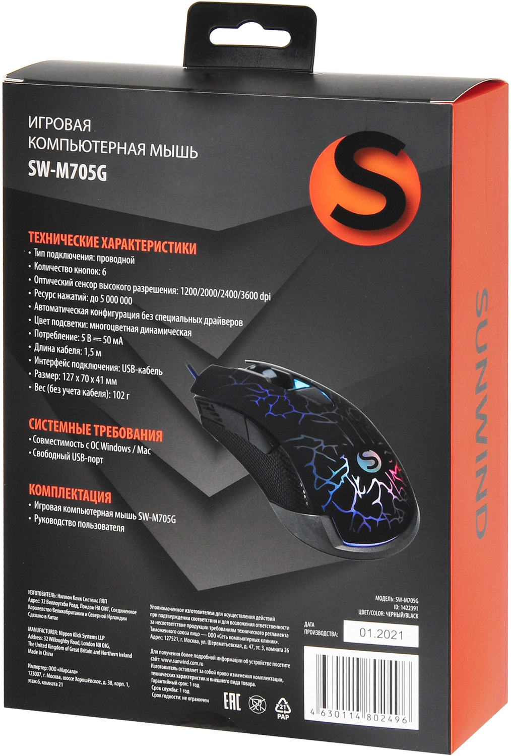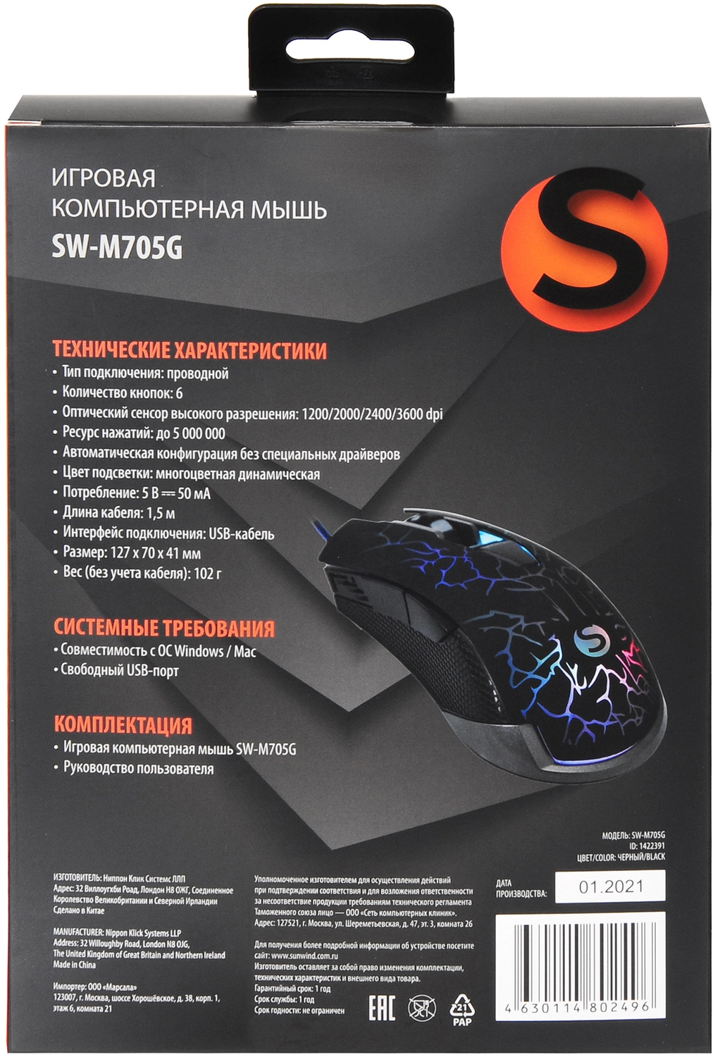 Мышь SunWind SW-M705G черный оптическая 3600dpi USB для ноутбука 6but (1422391)