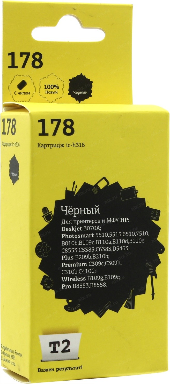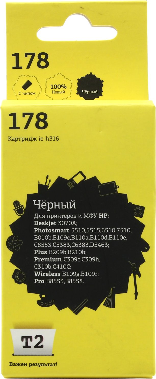 Расходные материалы T2 CB316HE/№178 Картридж №178 для HP Deskjet 3070A/Photosmart 5510/6510/7510/B110/C8583, черный, С ЧИПОМ, 250 стр. [IC-H316] | НИКС Екатеринбург