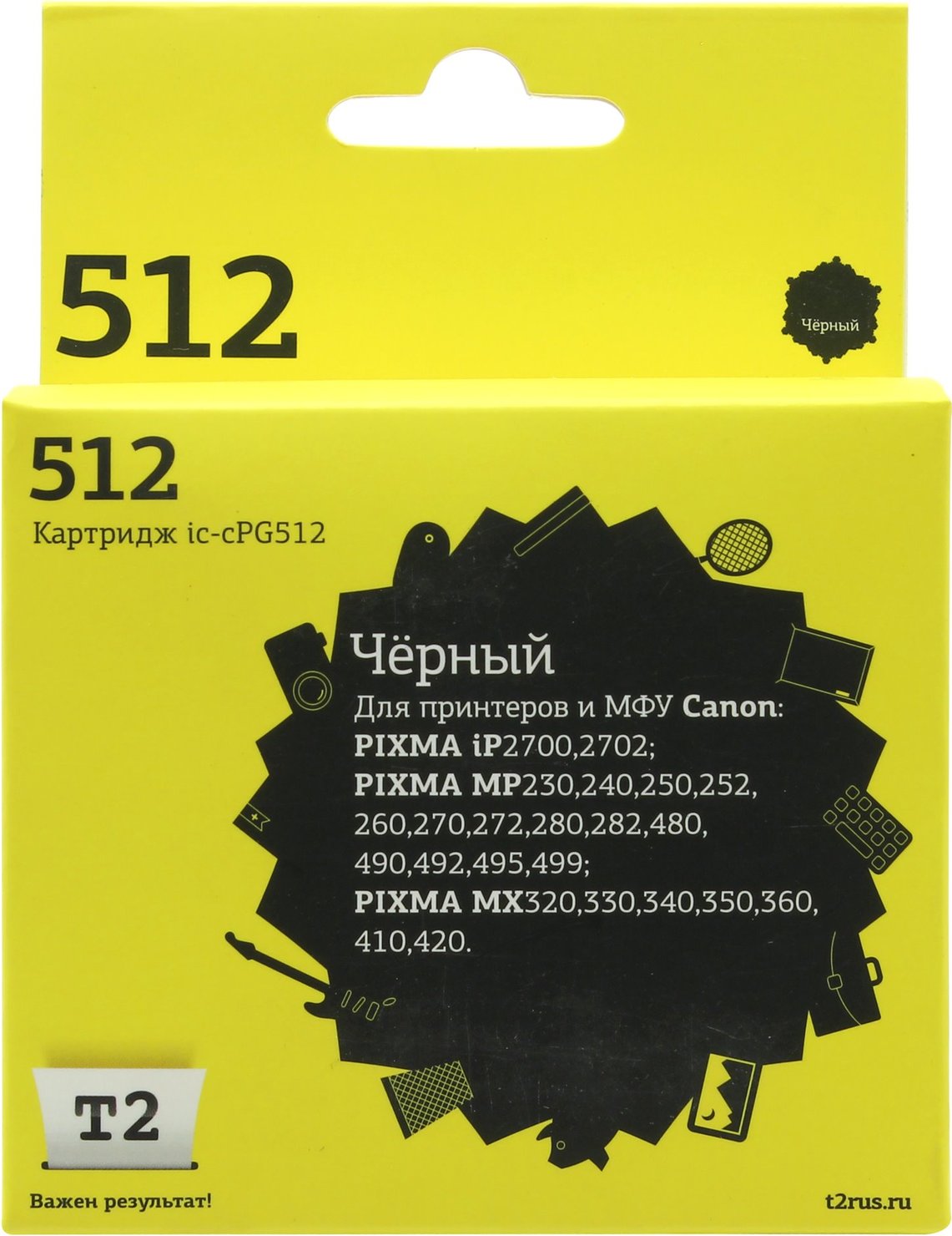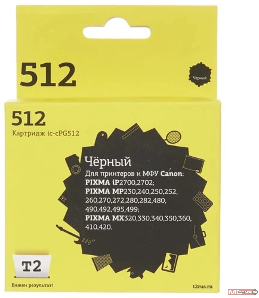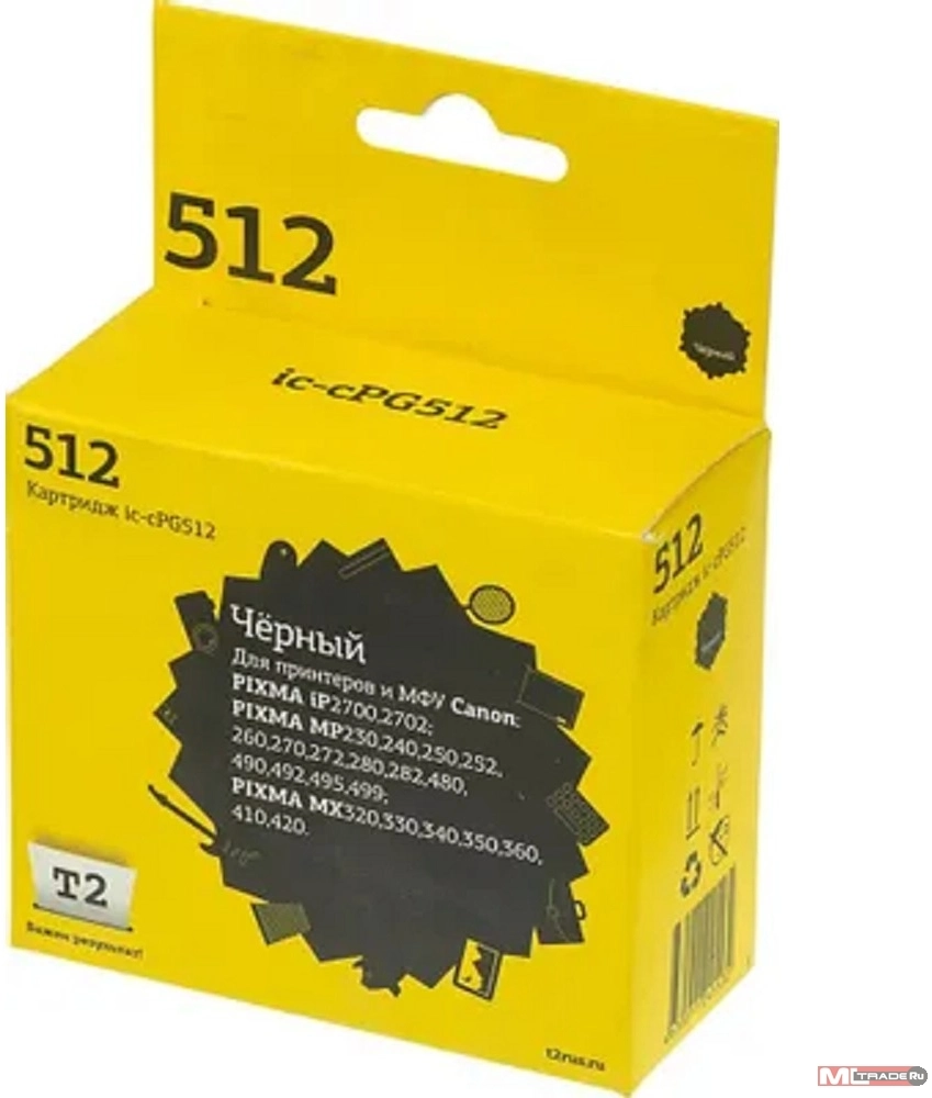 Расходные материалы T2 PG-512 Картридж (IC-CPG512) для Canon PIXMA iP2700/MP230/240/250/280/480/490/MX320/360/410, черный