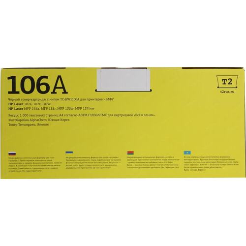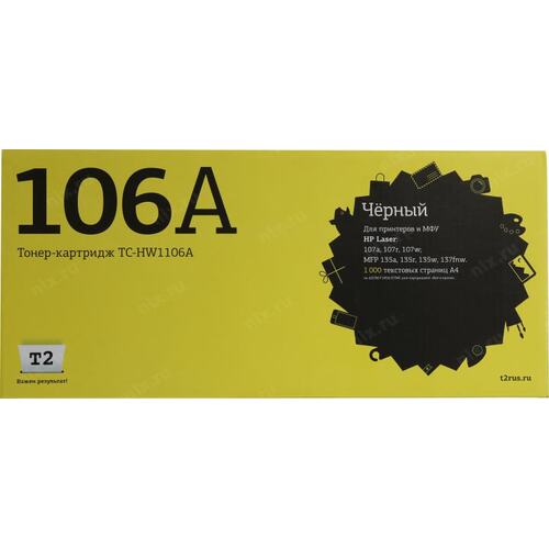 Расходные материалы T2 W1106A картридж TC-HW1106A для HP Laser 107a/107r/107w/MFP 135a/135r/135w/137fnw (1000 стр.) черный, с чипом