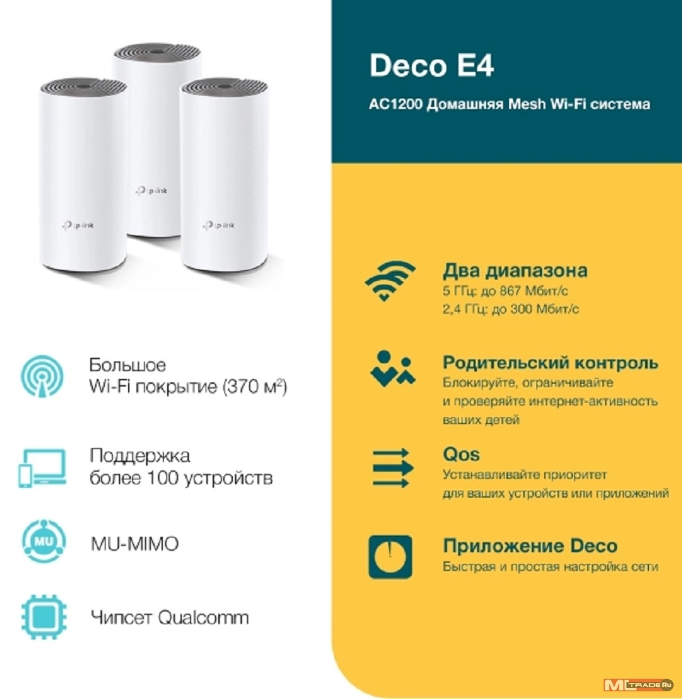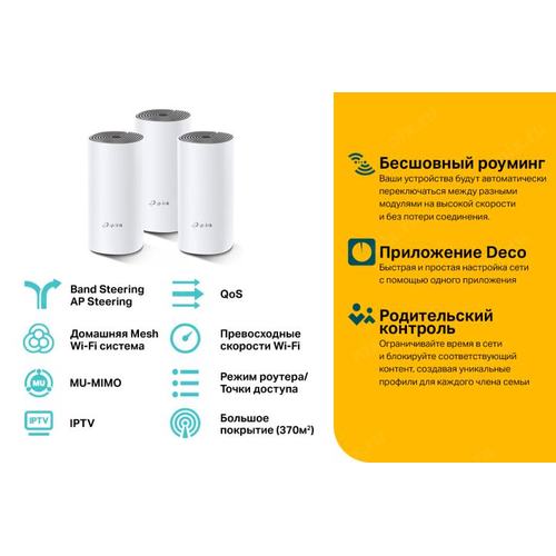 Сетевое оборудование TP-Link Deco E4(3-pack) AC1200 Домашняя Mesh Wi-Fi система [DecoE4(3-pack)]