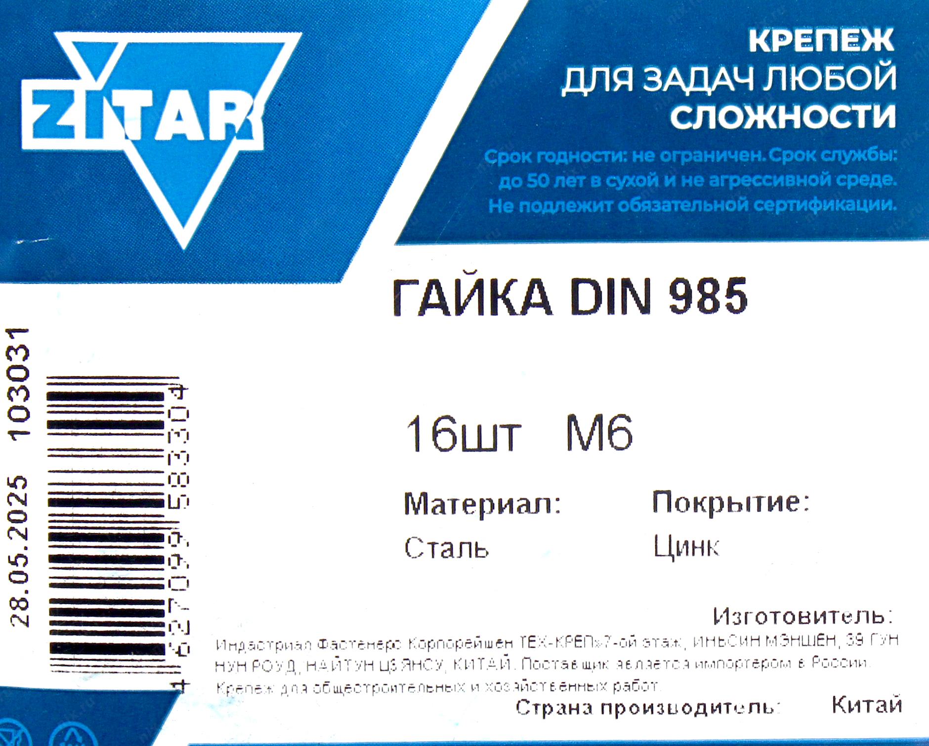 Tech-Krep/ZITAR <103031> Гайка самоконтрящаяся (DIN 985, М6, 16 шт)