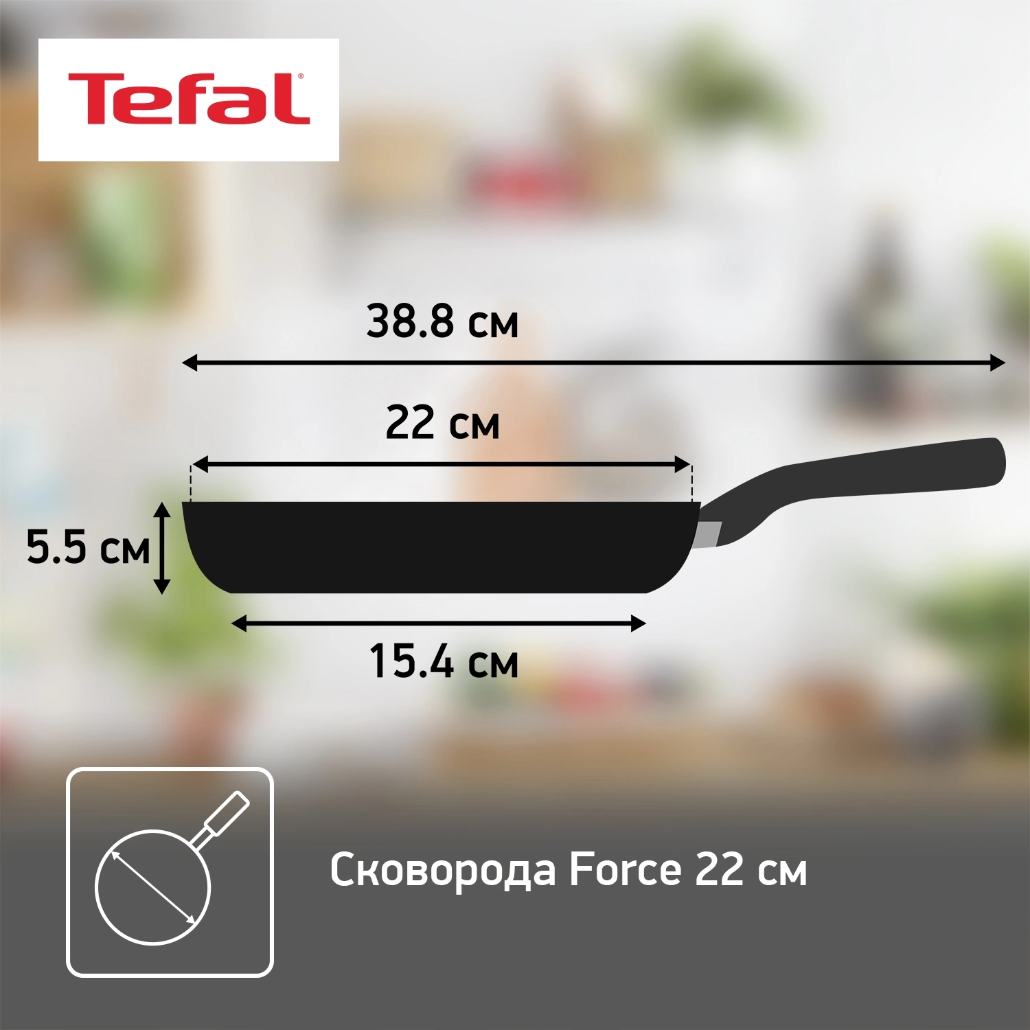 Сковорода Tefal Force 4218022 круглая 22см покрытие: антипригарное ручка несъемная (без крышки) черный (9100048314)